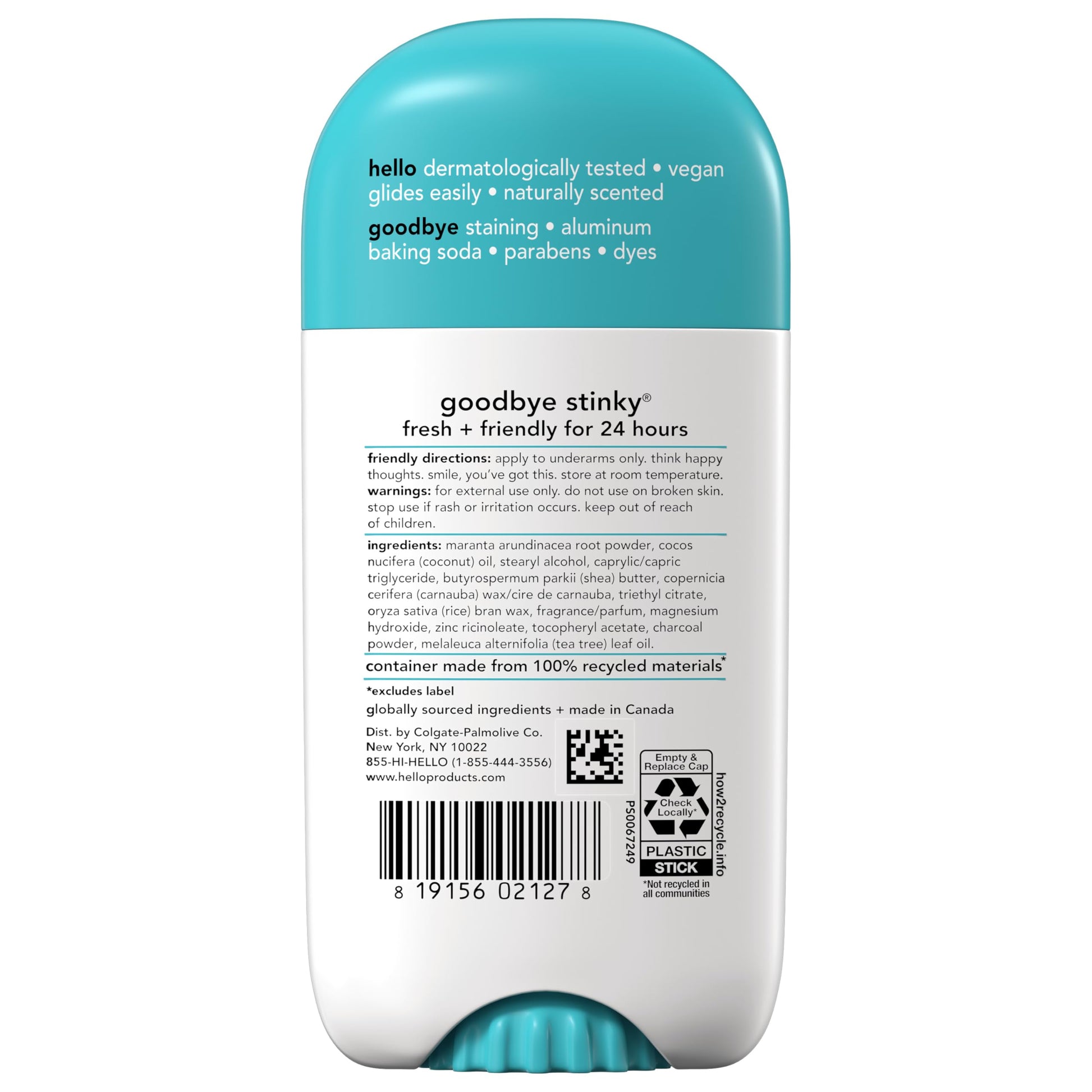 hello Clean and Fresh Aluminum Free Deodorant for Women and Men with Charcoal, 24-Hour Freshness, Baking Soda Free Deodorant, Dermatologically Tested, 2.6 oz Stick (2 Pack)