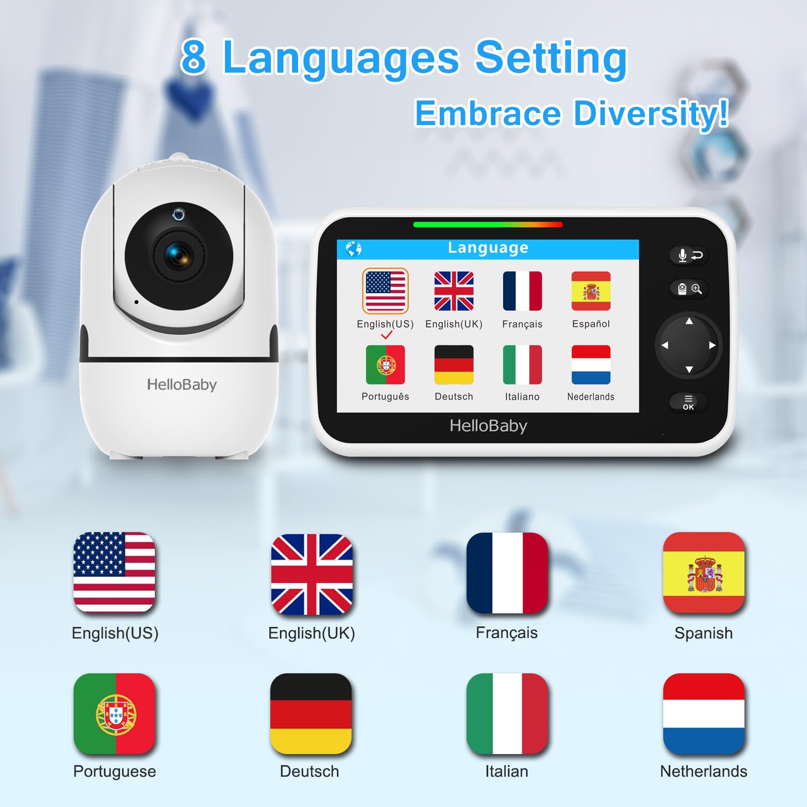 HelloBaby Baby Monitor No WiFi with Crib Clip, 5'' Screen and 30-Hour Battery Life, Baby Monitor with Camera and Audio, Flexible Clamp Mount with Long Gooseneck Arm by Hello Baby
