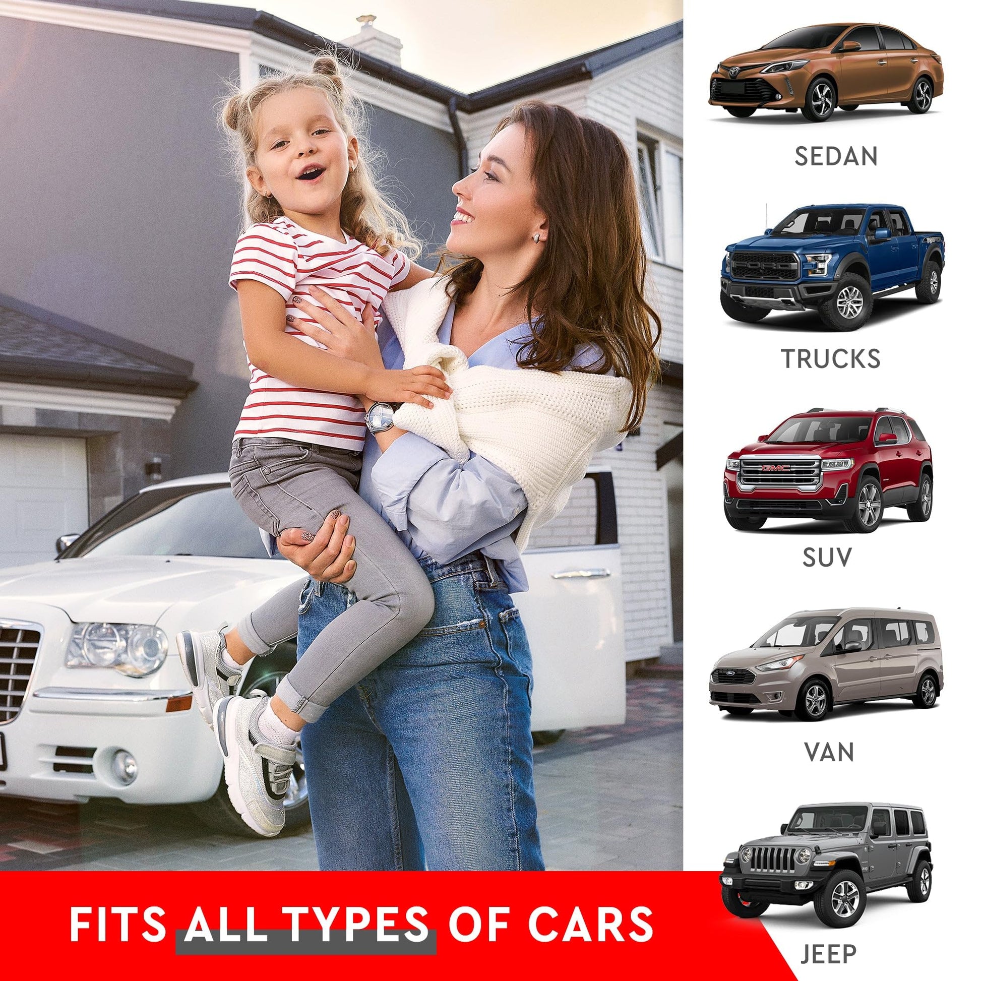 - Multifunctional – The car kick mat is for under children's car seats. Alternatively, the back car seat protector can be used for pets, dogs, and cats as a pet seat cover. The kick mat protector is compatible with all types of cars, trucks, vans, and SUVs.