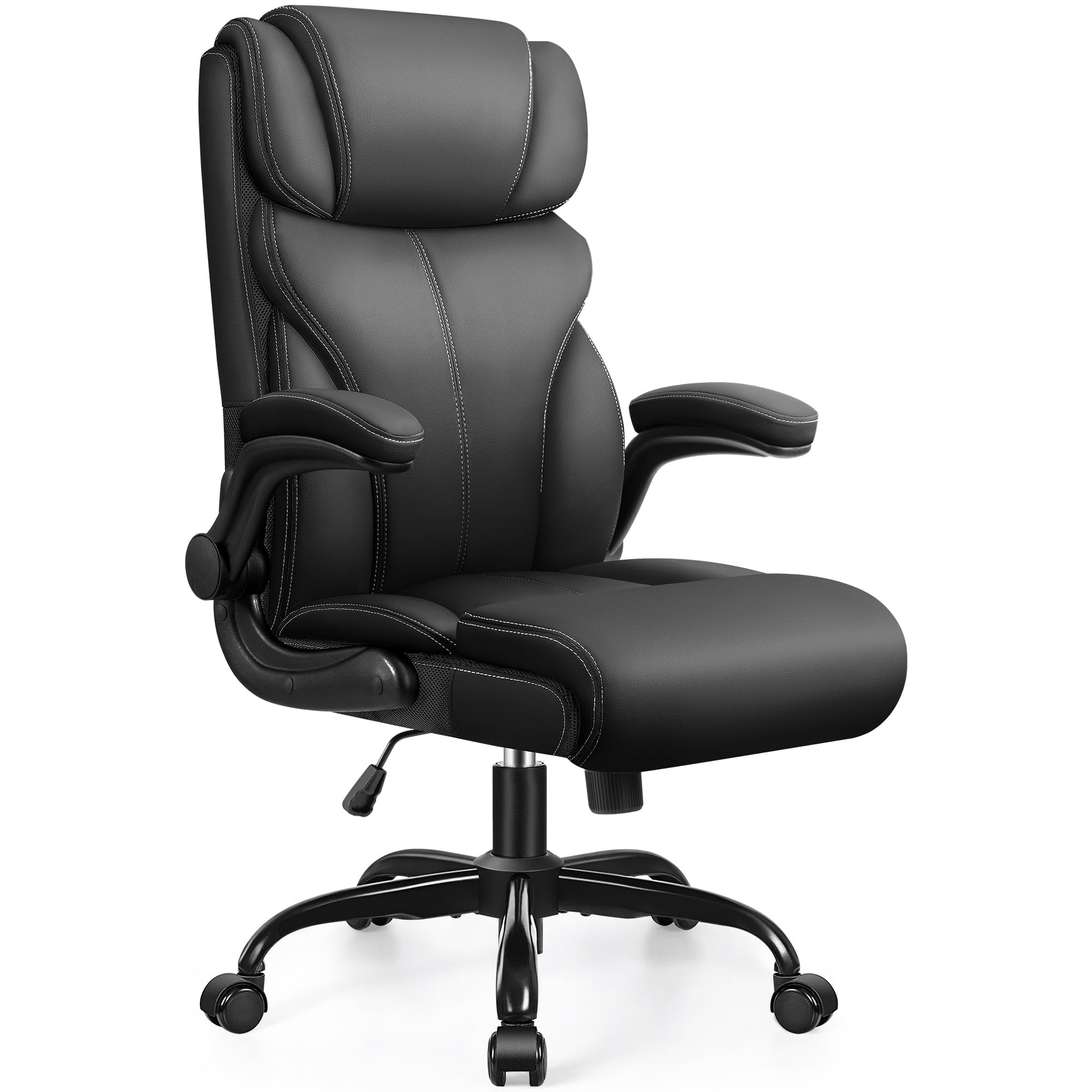 HeroSet Office Chair, Ergonomic Big and Tall Computer Desk Chairs, Executive Breathable Leather Chair with Adjustable High Back Flip-up Armrests, Lumbar Support Swivel PC Chair with Rocking Function