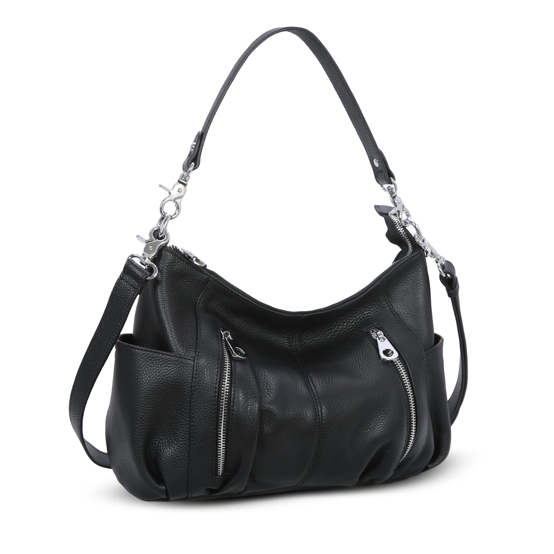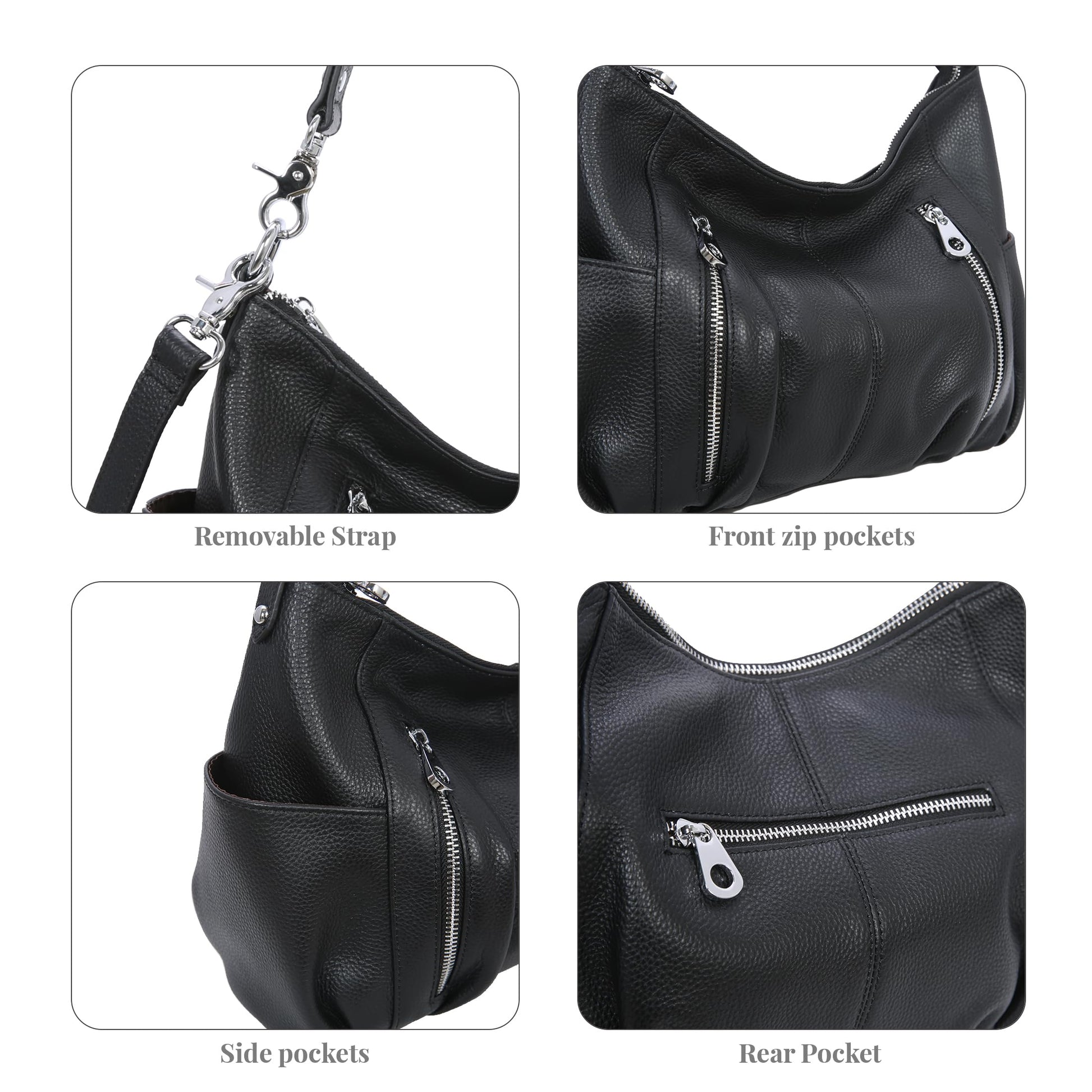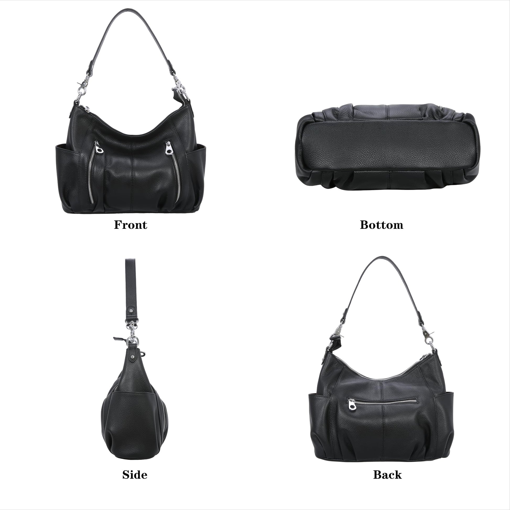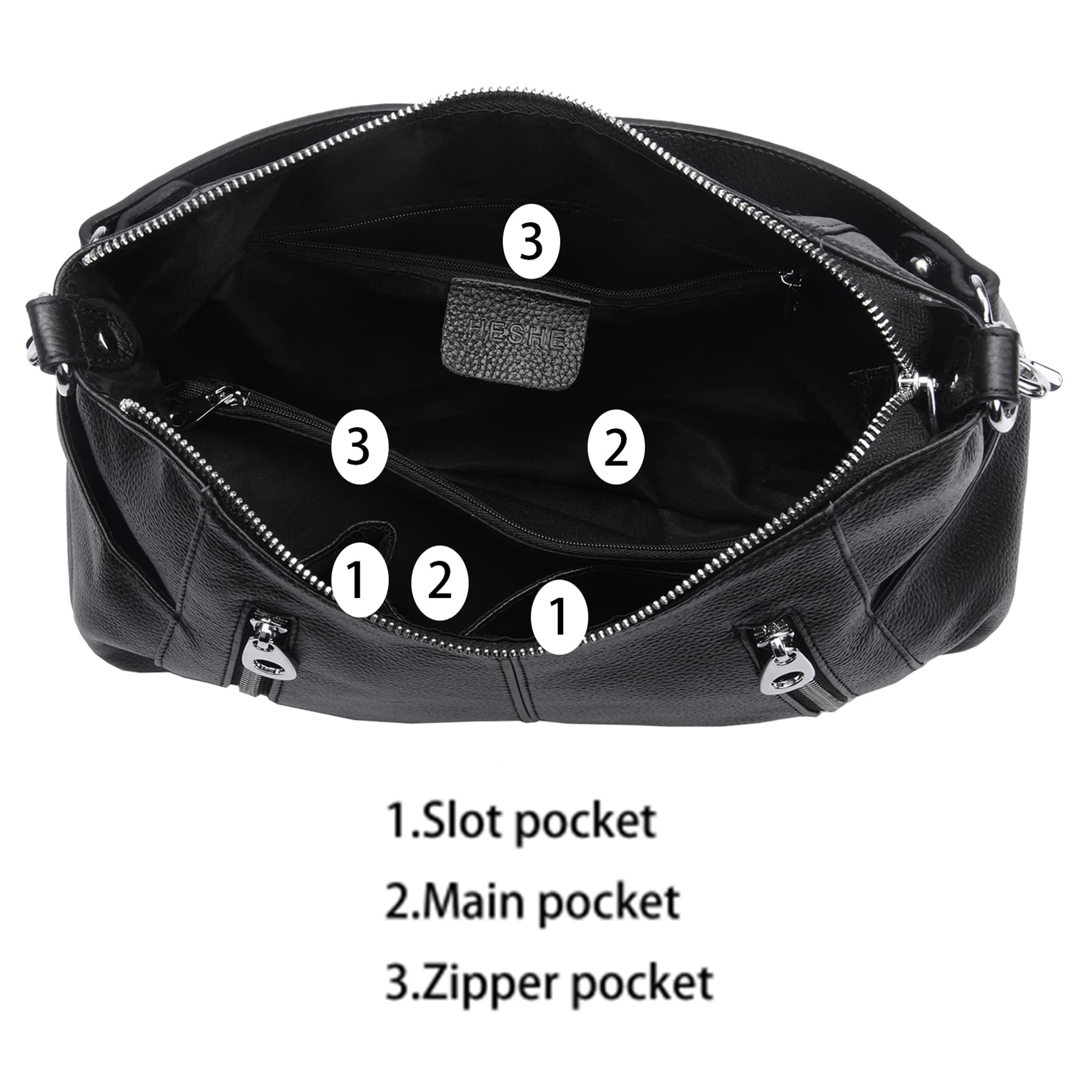 HESHE Genuine Leather Purses for Women Shoulder Hobo Bag Crossbody Satchel Handbags Designer Ladies Totes Purse(Black)