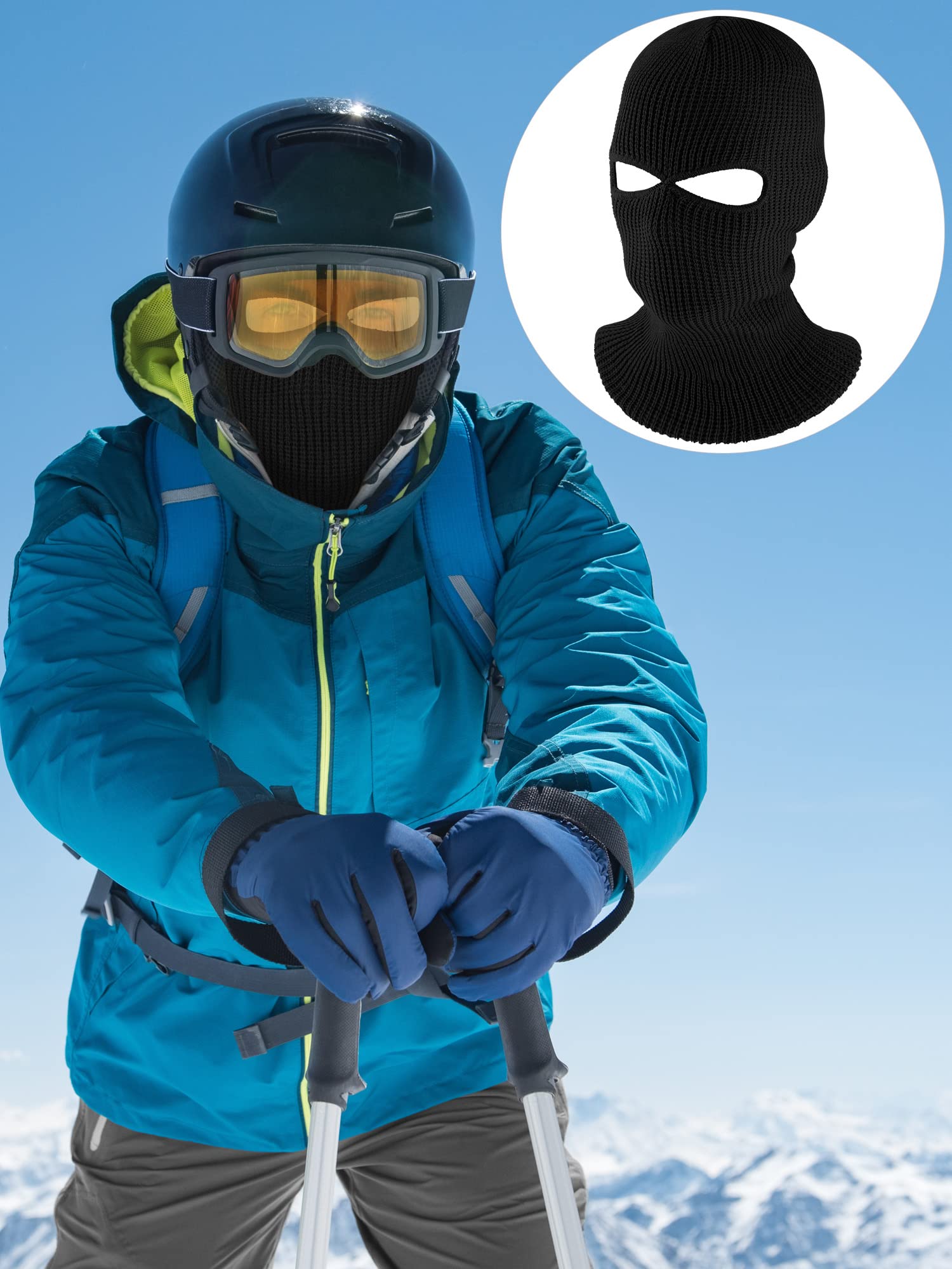 HESTYA 2 Holes Ski Masks Winter Balaclava Knitted Full Face Cover Mask Beanie Hat for Men Women Cold Weather Outdoor Sports(Black, Medium)