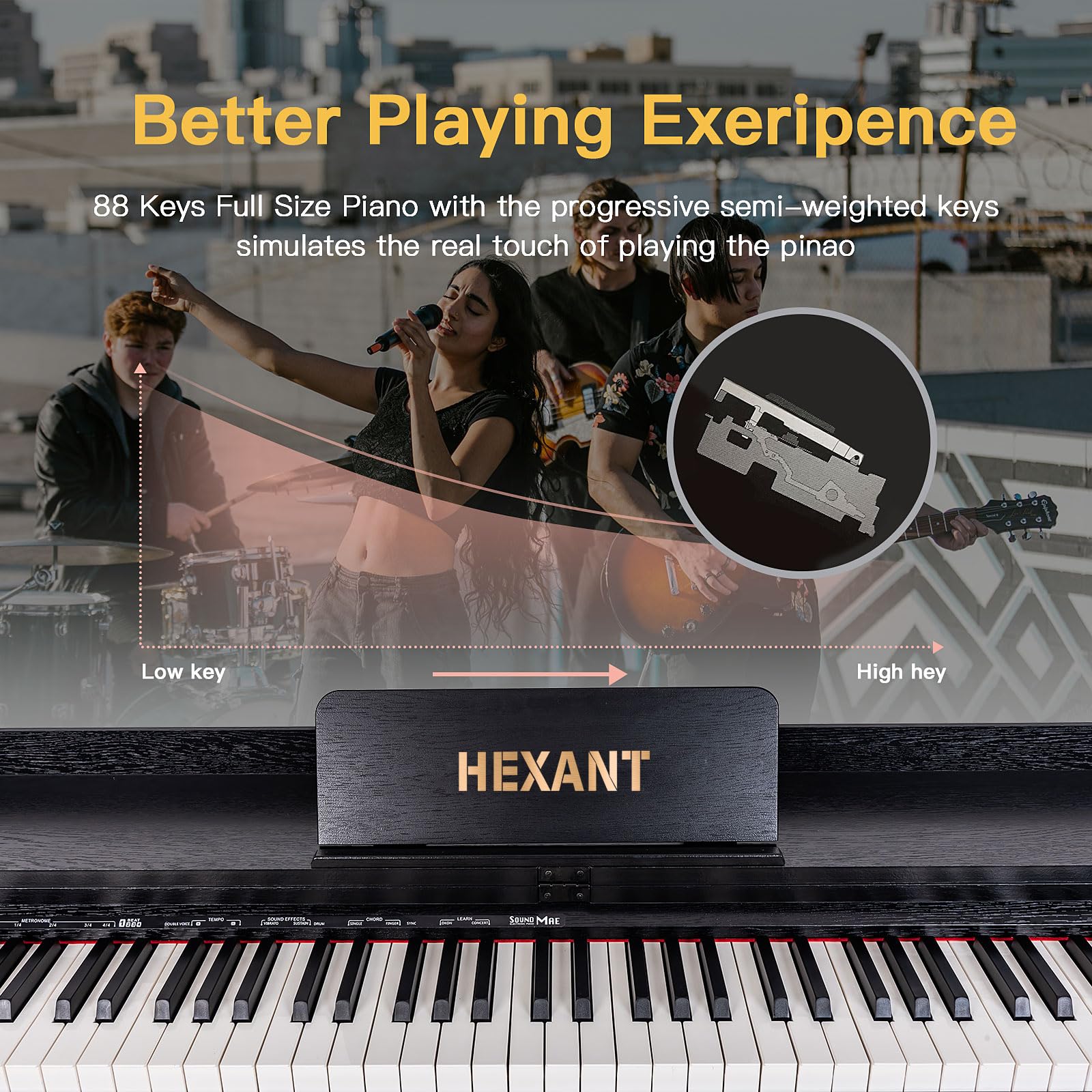 - 【Progressive Key】Our digital piano adopt the progressive keyboard, simulating the feel of the real acoustic piano and providing velocity sensitivity and adjustable touch response, 3 pedals (sustain, soft, sostenuto) and 2x25w amplifiers for a quality playing experience.