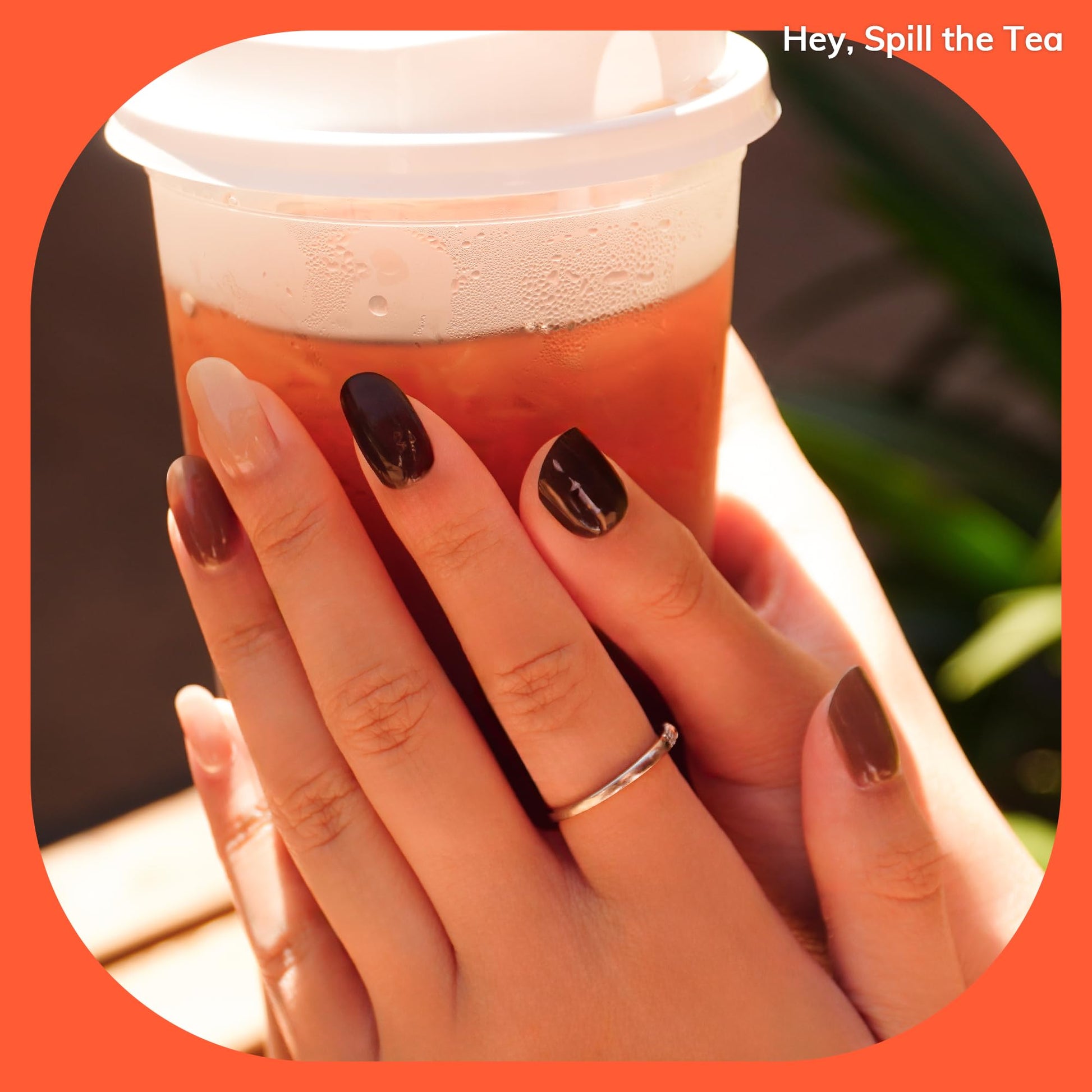 Heyhae Semi Cured Gel Nail Strips | Sun Cured Wraps No LED Lamp Needed - Easy Apply & Remove | Includes 28 Strips, 1 Prep Pad, 1 Nail File & 1 Wooden Stick - Hey, Spill The Tea