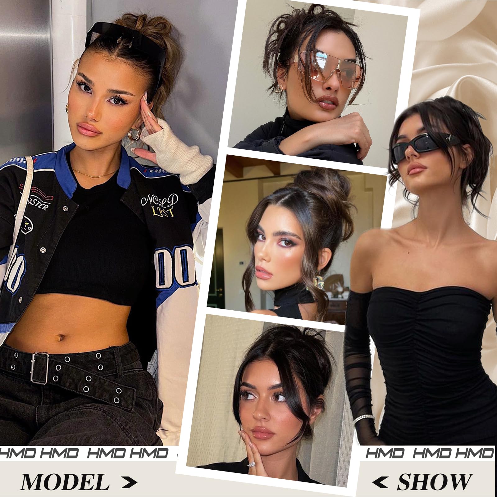 HMD Tousled Updo Messy Bun Hair Piece Hair Extension Ponytail With Elastic Rubber Band Updo Extensions Hairpiece Synthetic Hair Extensions Scrunchies Ponytail Hairpieces for Women