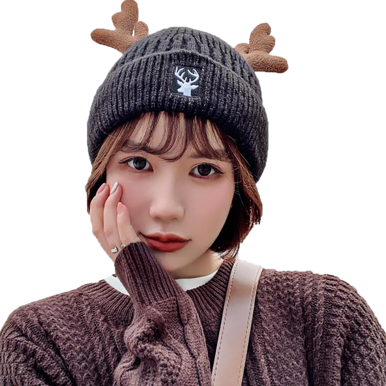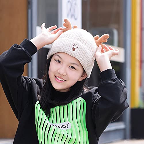 HMTRADE Christmas Knitted Antler Hat,Cute Reindeer Antlers Knitted Hat,Crochet Knit Cap for Adults,Winter Warm Beanie Cap Black