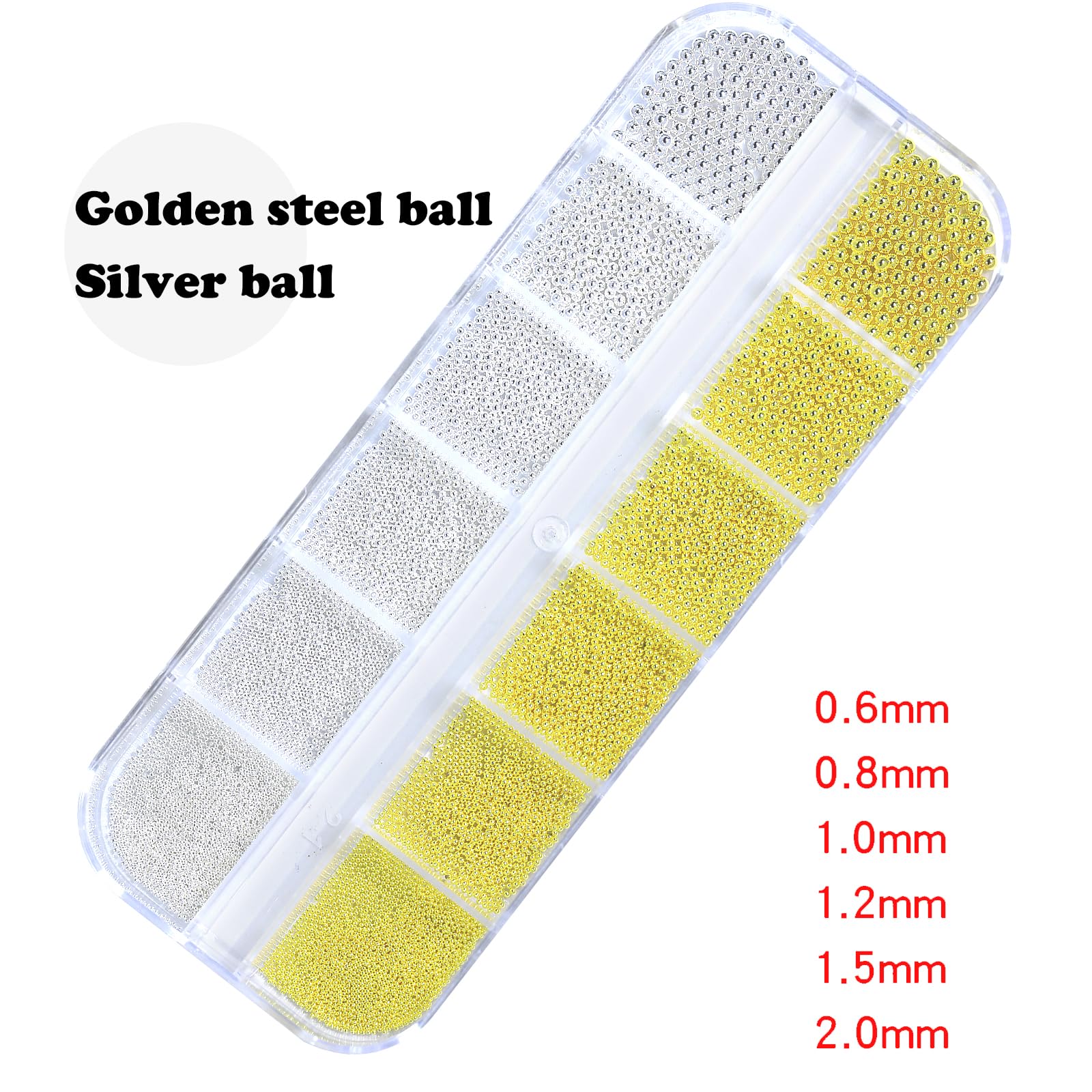 HNUIX Nail Charms Studs - 3D Multiple Colors, Flat Back Rhinestones, Caviar Beads, Round, Gold Silver, with Kit, for Nail Art