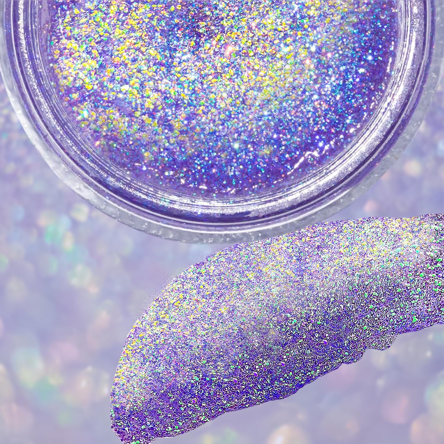 Our unique Holographic Glitter Gel, specially designed to elevate your makeup experience. With its captivating color-shifting properties under different lighting conditions, this glitter gel is truly a game-changer. Experience the full range of dynamic color transformations under various lighting conditions, showcasing its incredible diversity.
