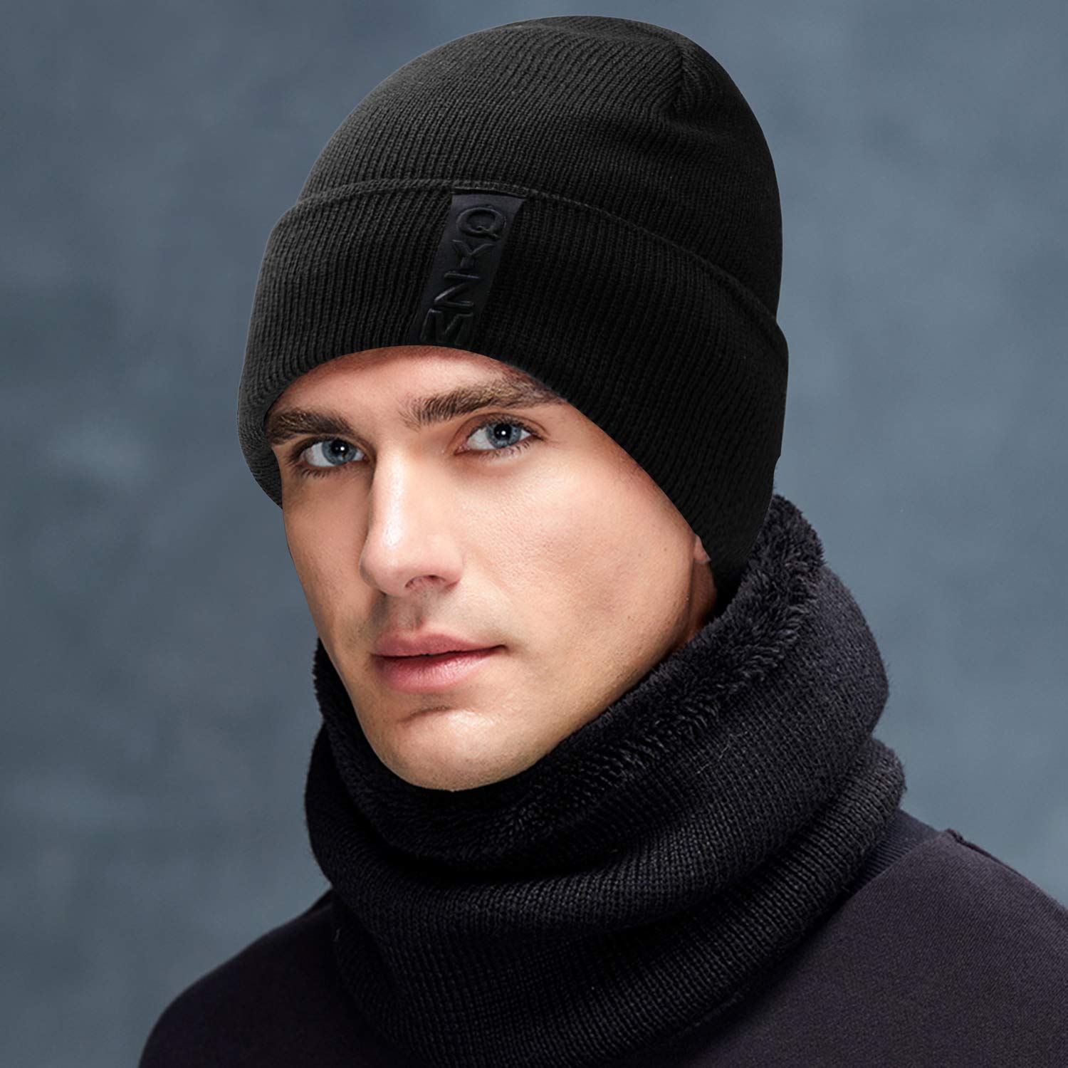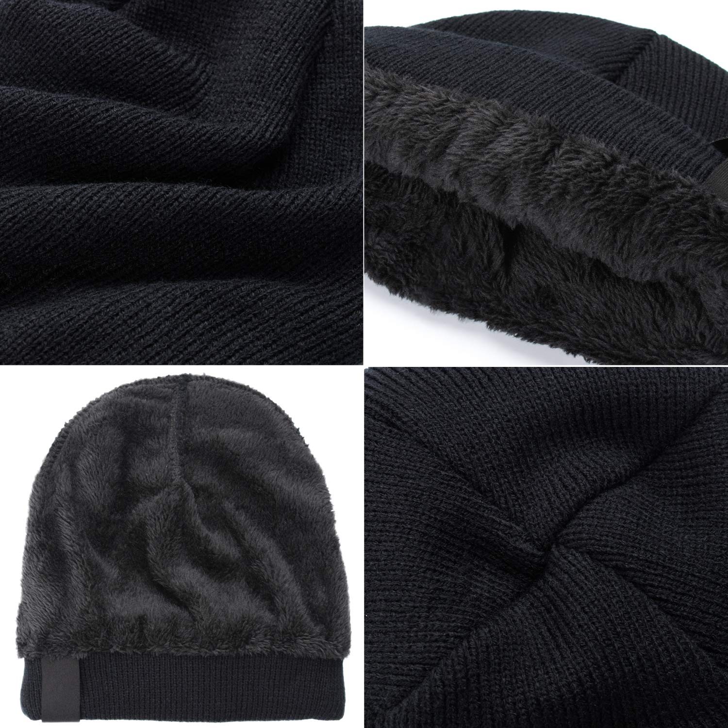 Hongtellor Knit Beanie Warm Thick Lined Hat Mens Winter Skull Cap Unisex Beanie Cap Black