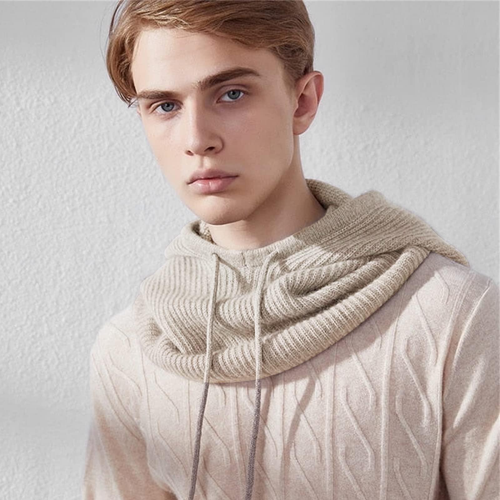 - Adjustable Size - AQOKKA knit skull cap comes in one size, which measures 12.2 inches wide x 18.8 inches long, with some stretch to fit most women's and men's head sizes. This hooded scarf also has an adjustable drawstring strap so you can adjust the comfort level to your head circumference to make sure the hat fits you.