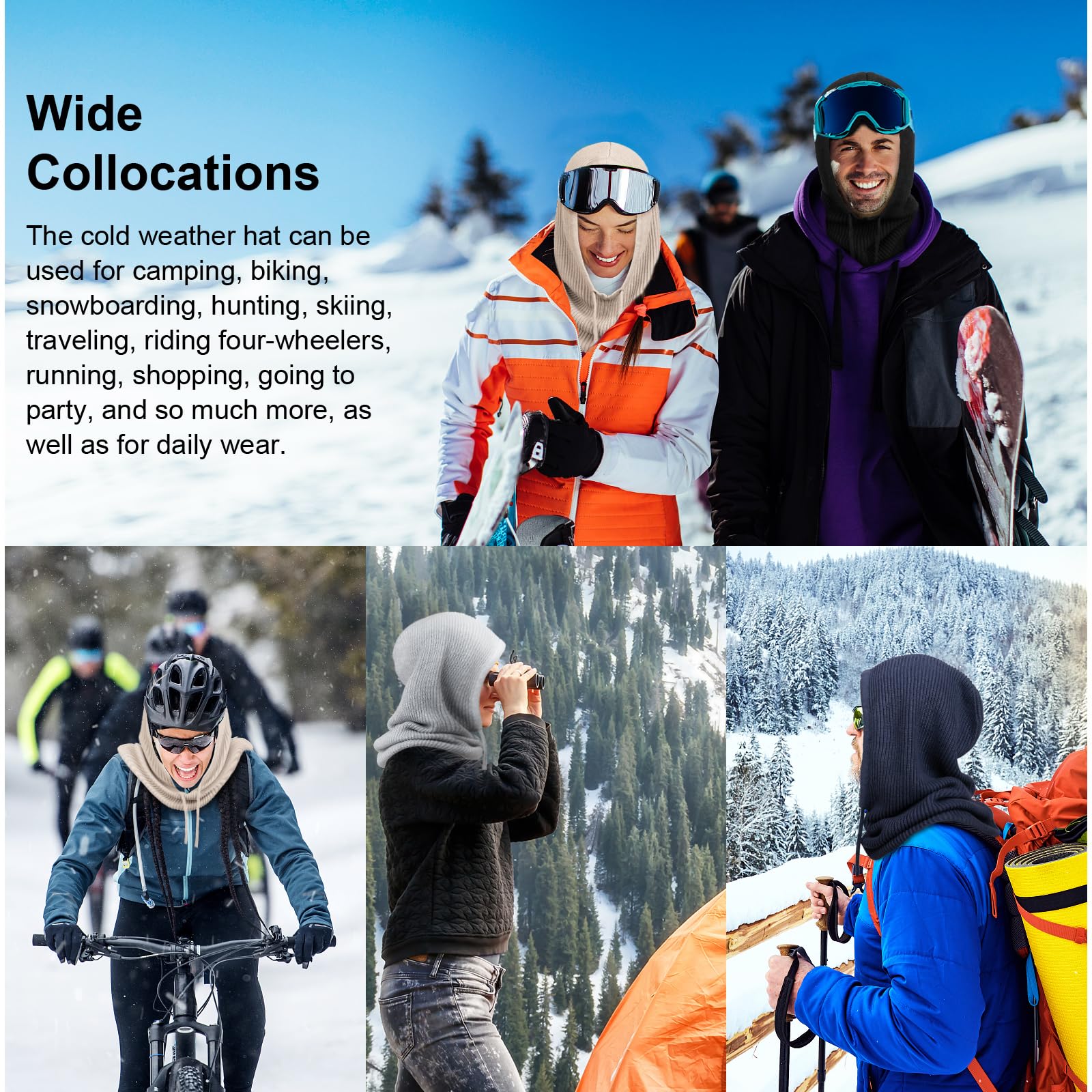 - Widely Used - The winter scarf hat can be easily matched with t-shirts, jeans, winter coats, boots, jackets, etc, which is perfect for daily use. You can also use it for outdoor activities such as skiing, motorcycle riding, running, hiking, and other outdoor activities in winter to protect your ears and neck from the cold air.