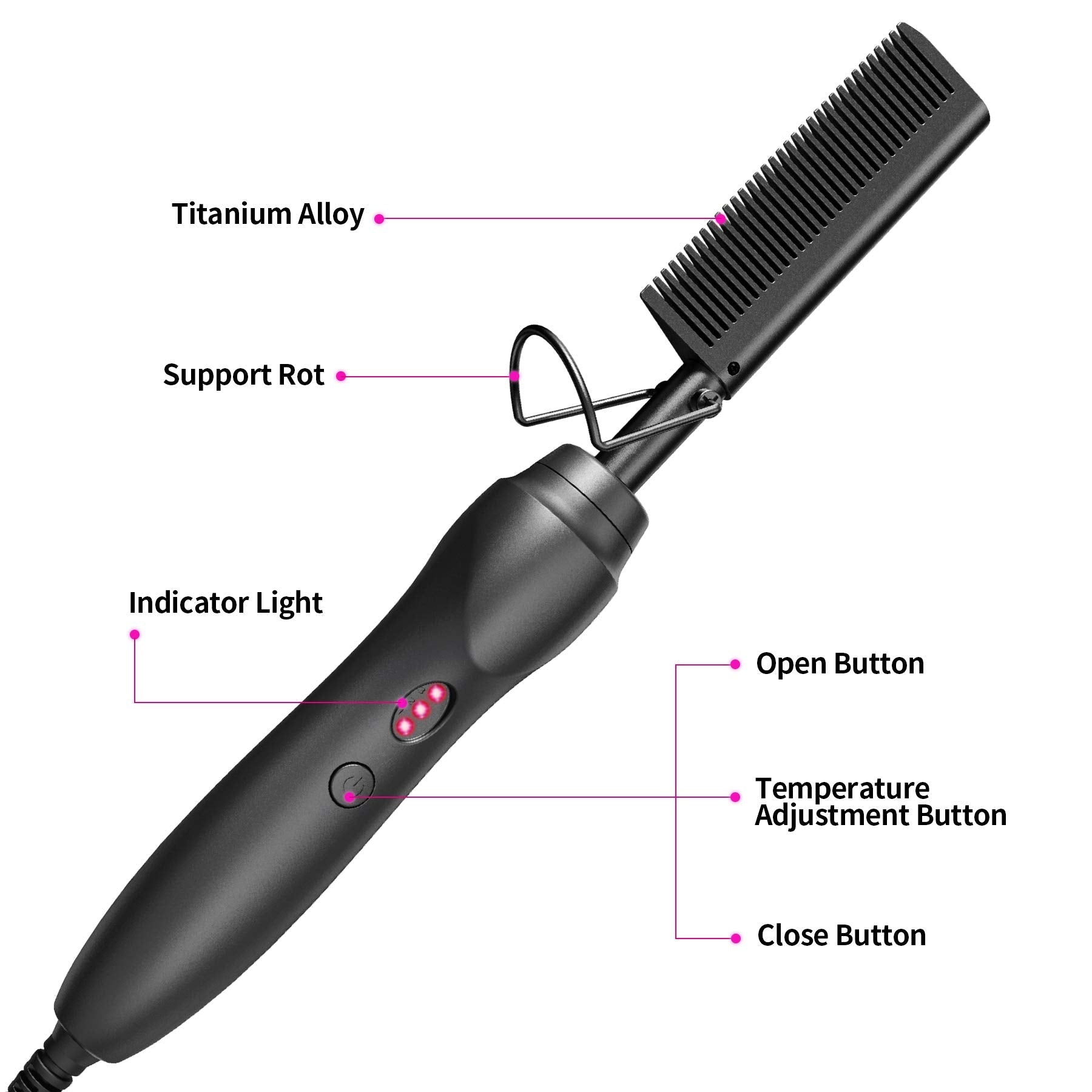 Hot Comb Hair Straightener Heat Pressing Combs - Ceramic Electric Straightening Comb, Curling Iron for Natural Black Beard Wigs Holiday Gift - Black 5 In1