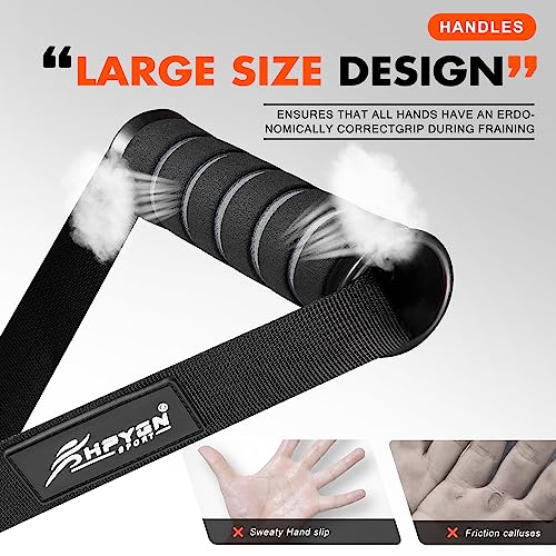 - Ultra Heavy Duty Gym Handles for Cables- Strong braided nylon straps with solid ABS cores, sweat resistant and soft foam padded grip, Exercise with confidence these won’t snap, break, or twist. Thick woven nylon webbing which proves more durable.