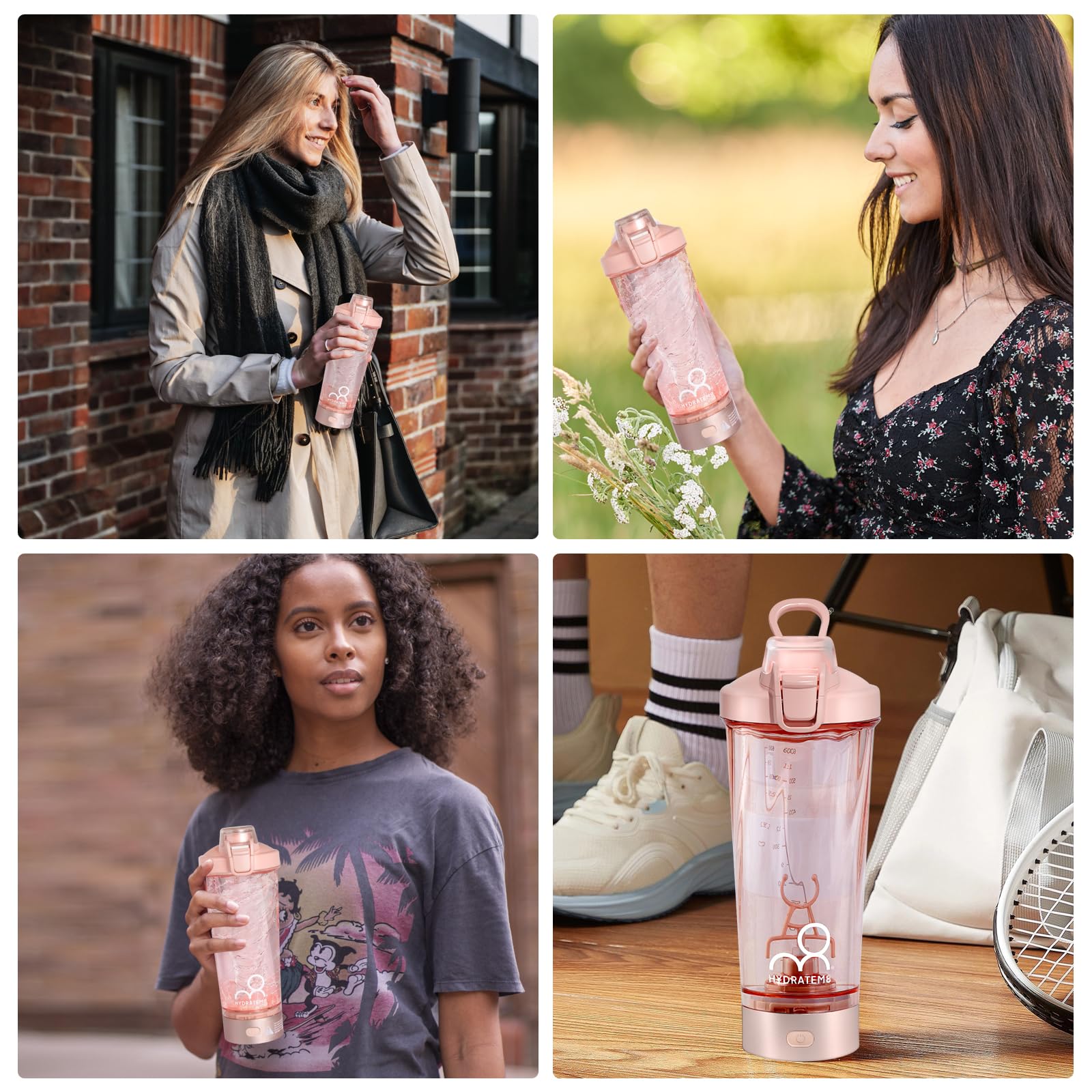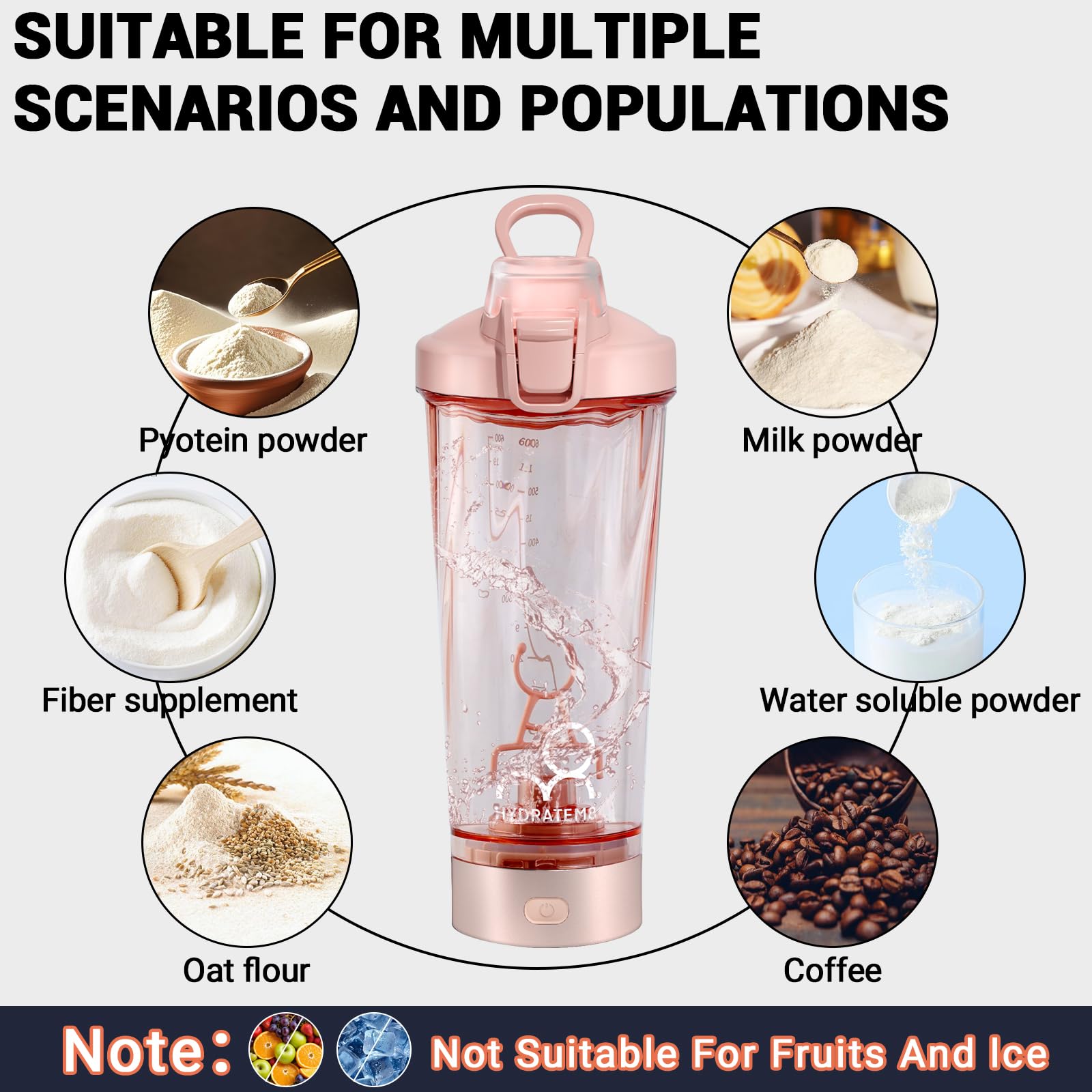 HYDRATEM8 Electric Shaker Bottle 20oz: Automatic Clump-free Nutrition Powder Vortex Blender Cup with Magnetic Charging - Leakproof & Quiet Protein Mixer - Portable Gym Gifts for Athletes/Gym/Trave