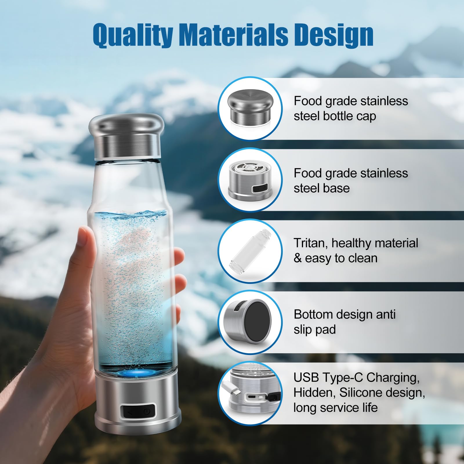 - 【Leak-proof and Safety】Hydrogen water bottle made of upgraded tritan material, which does not contain any harmful substances. The mouth of the hydro health hydrogen water bottle is sealed tightly with a sealing ring, which not only maintains the concentration of hydrogen, Hydregen bottle prevents leakage. It's perfect for on the go use, whether you're traveling, at the gym, or in the office, targeting Health Promoting Benefits
