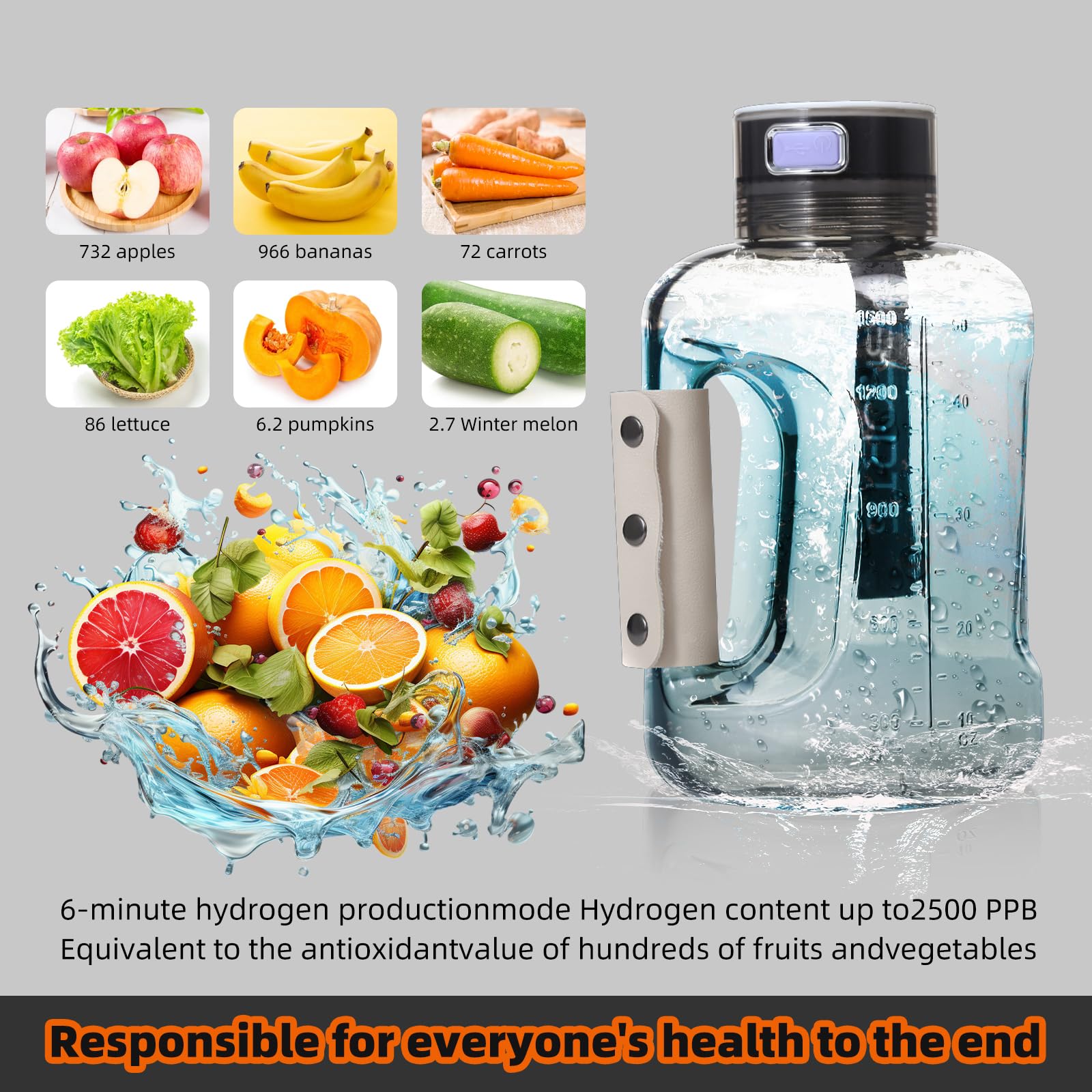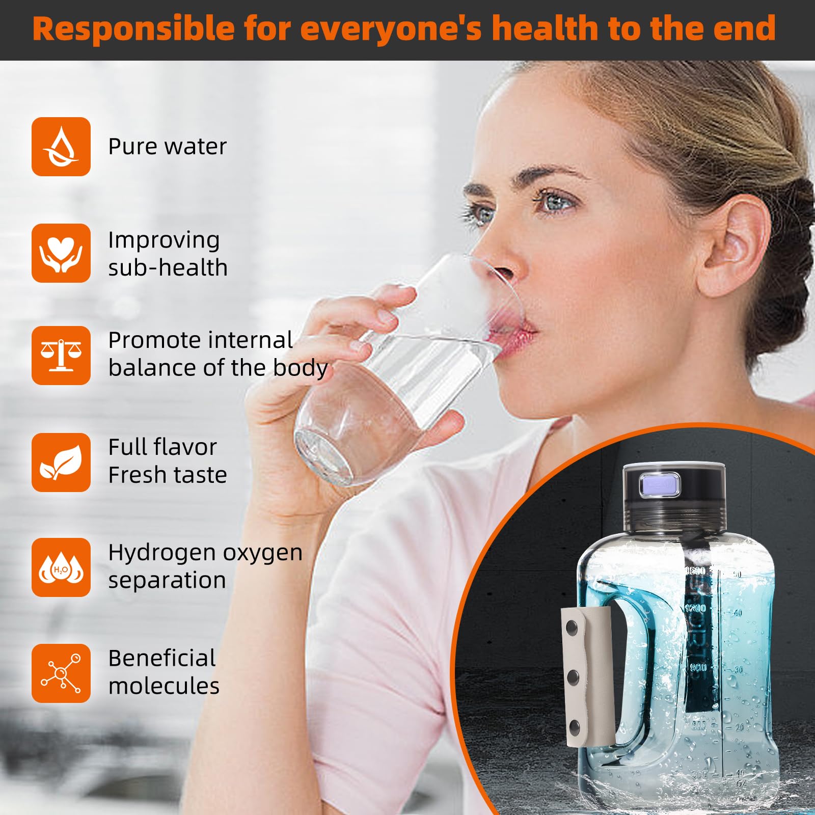 - 1.5L Large Capacity: The Large Hydrogen Water Bottle has a large capacity of 1500ml. easily meet your and your family's daily needs. Meet your water needs throughout the day, much more convenient than water purifiers, bedside water dispensers and water fountains.