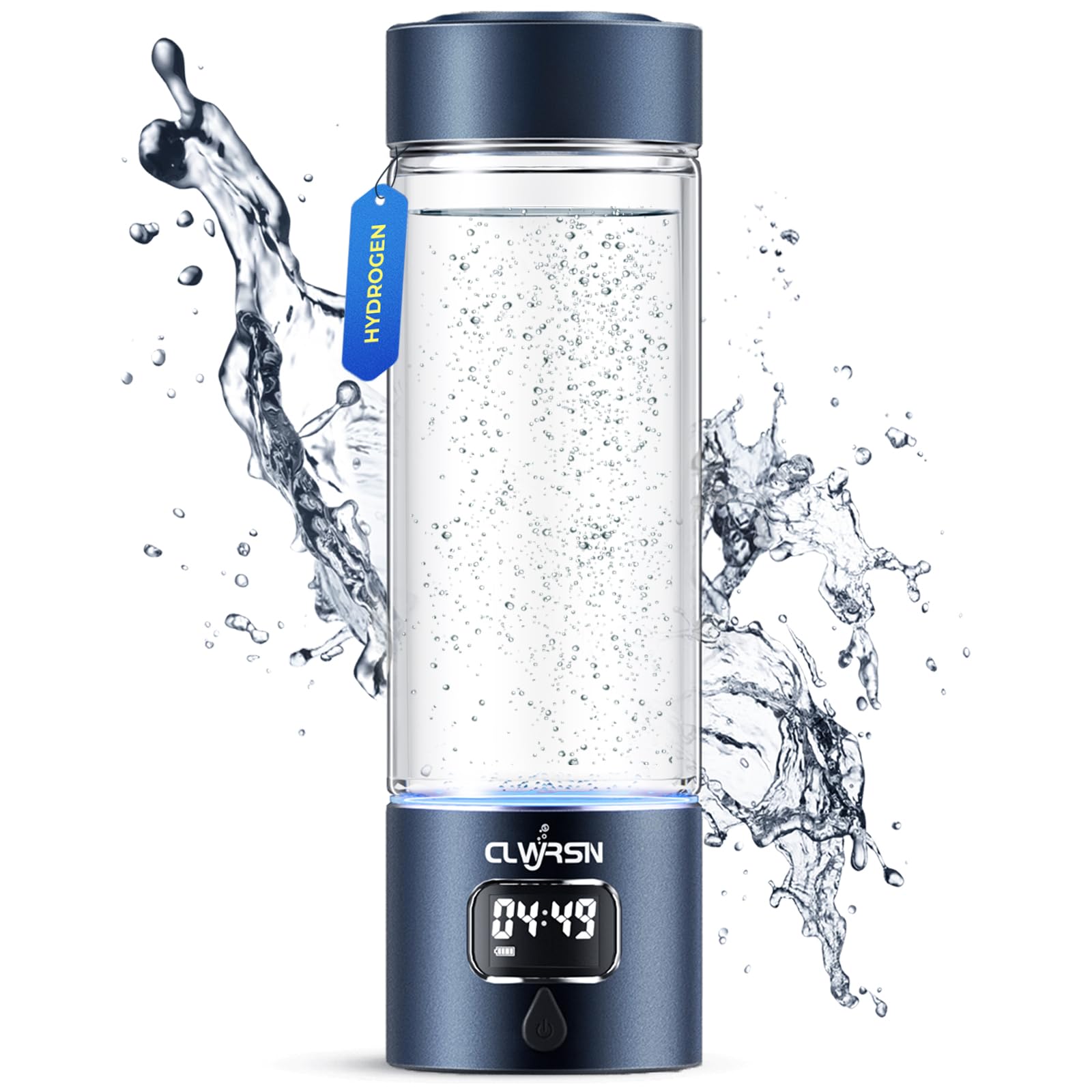 - Borosilicate Glass & Sealed Design: The hydrogen water bottle generator is made from high-temperature resistant borosilicate glass and a 1.2mm thick aluminum alloy shell, featuring a sleek navy blue design that is both lightweight and durable. The upgraded, thick silicone gasket ensures a leak-proof seal, allowing you to enjoy hydrogen-rich water with confidence.