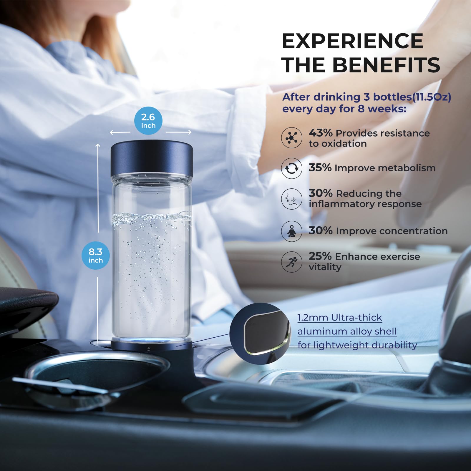 - Boost Your Healthy Lifestyle: Hydrogen water helps reduce inflammation, improve focus, boost metabolism, and provide antioxidant benefits. In addition to drinking hydrogen-rich water, our bottle also offers hydrogen inhalation. Add hydrogen-rich water to your daily routine for a healthier lifestyle.