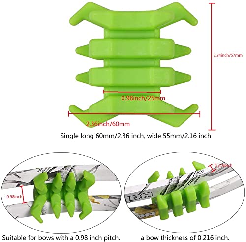 Details: Material: High quality, soft, durable rubber Limb Spacing Size: 25mm/0.98 inch Single long 60mm/2.36 inch, wide 55mm/2.16 inch. Suitable for bows with a 25mm / 0.98 inch pitch and a bow thickness of 5.5mm/0.216 inch. Very useful to protect your limbs. Color: Green, Black Lightweight, Convenient to Carry and Easy to Install Perfectly Reducing Vibration Suitable for split limbs compound bows Package: 1 pair bow limbs damper