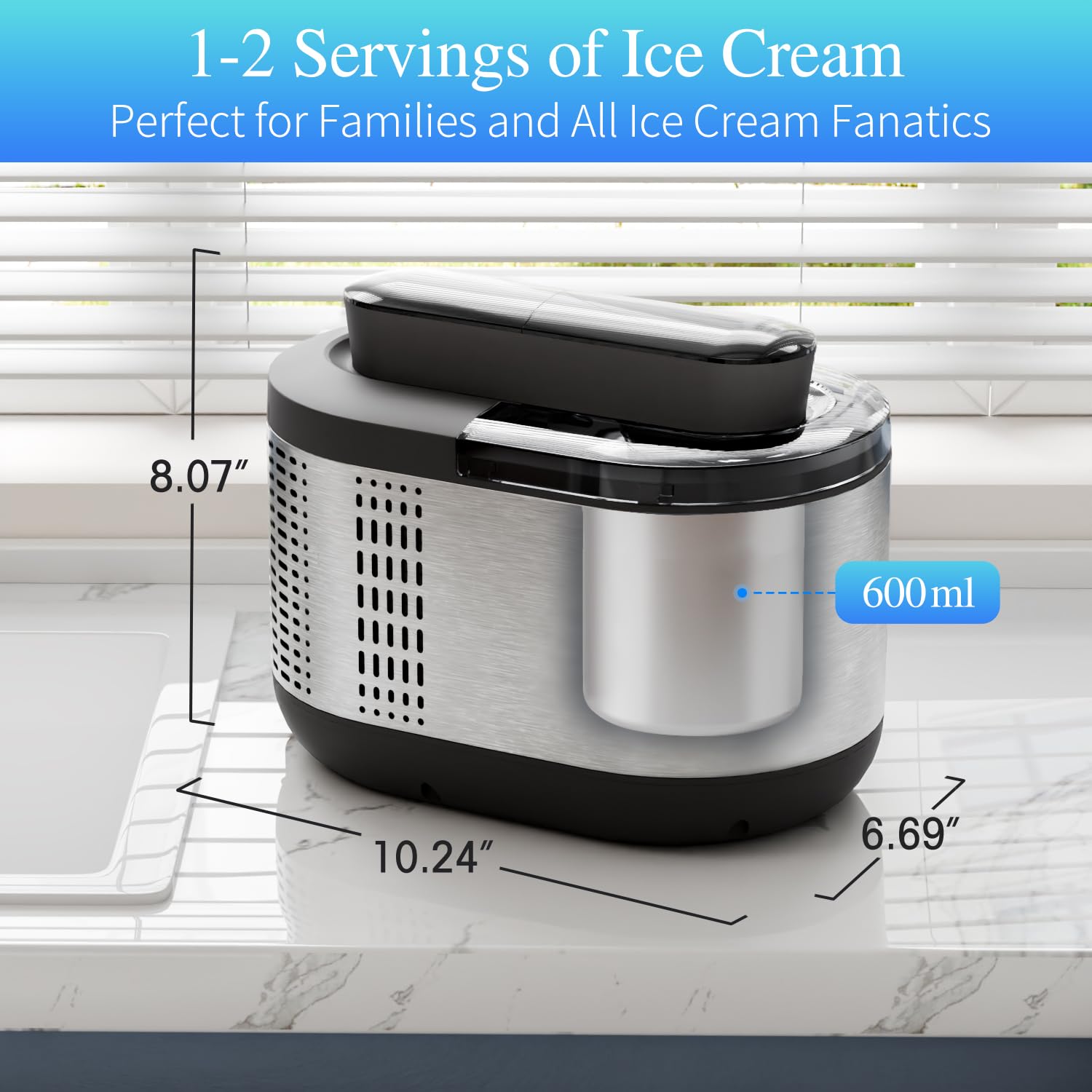 - Customize Your Portions: Ice cream machine maker serves 1-2 portions, ideal for families, couples, or anyone who loves a personal-sized frozen treat. Ice cream makers countertop make 600mL fresh, delicious ice cream, gelato in each batch. If you want to make ice cream for a larger family, please plan ahead.