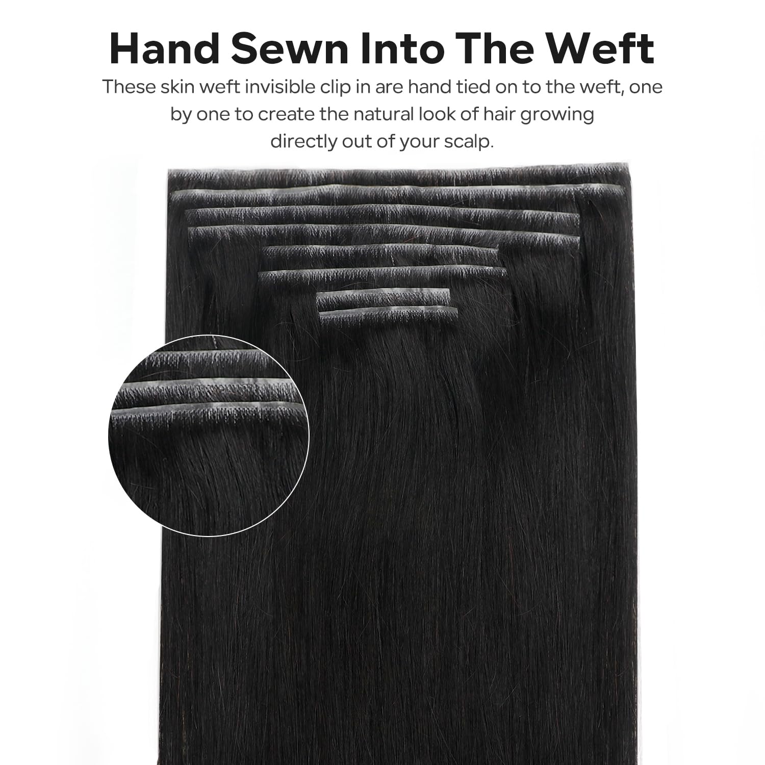 - 【Injected Hand-tied】Our Injected clip in hair extensions for a barely-there feel. Each strand of hair is tied to the thin weft, create the natural look of hair growing out of your own scalp. The design makes the seamless clip ins more invisible, comfortable, natural and lighter.