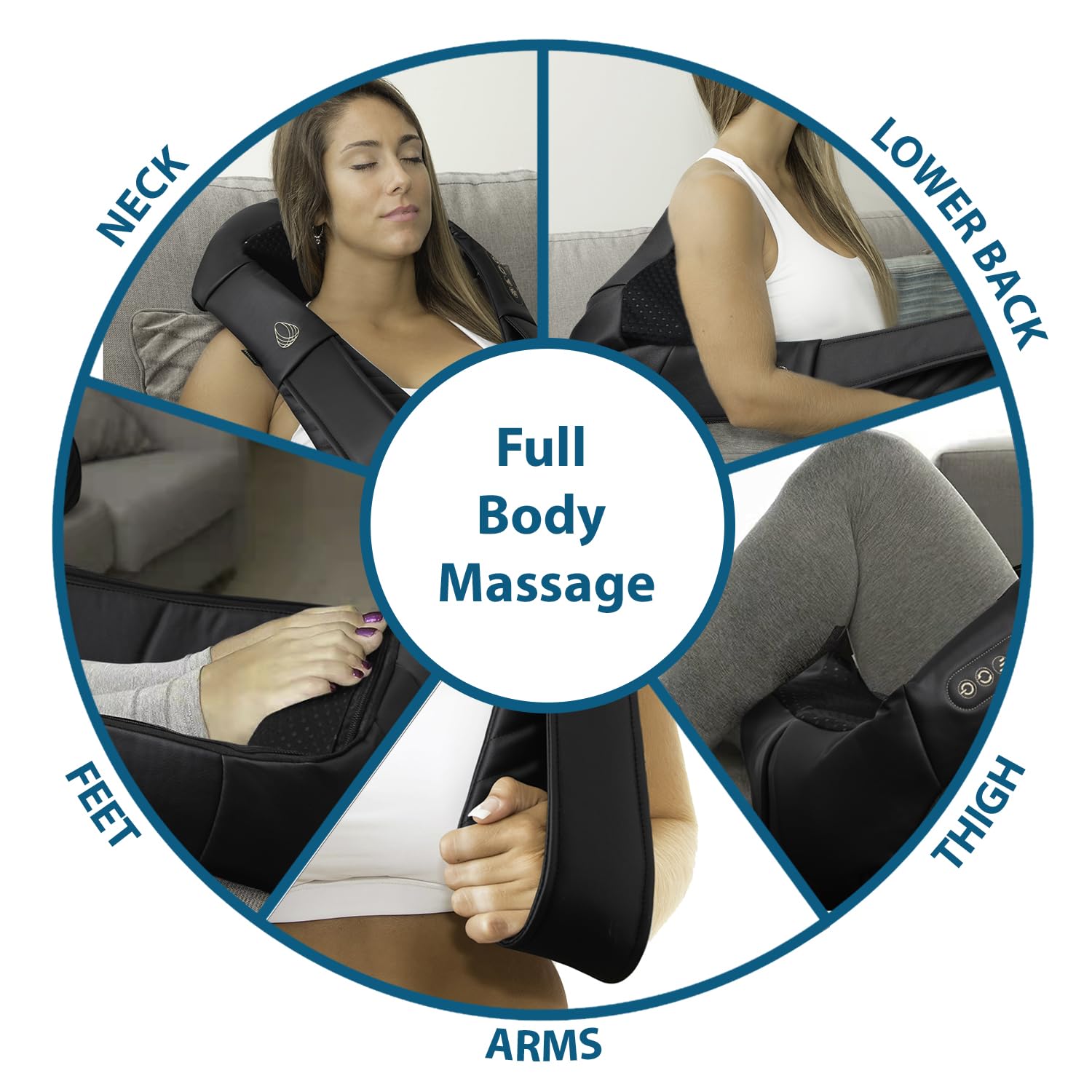 - 8 Massage roller balls - This corded shoulder massager comes with 4 Big nodes and 4 small nodes, which provide deep tissue massages on your neck, shoulders, upper back, lower back, waist, Foot, thighs, calves, legs, feet and arms . All this in the InvoSpa shiatsu neck & back massager with heat.