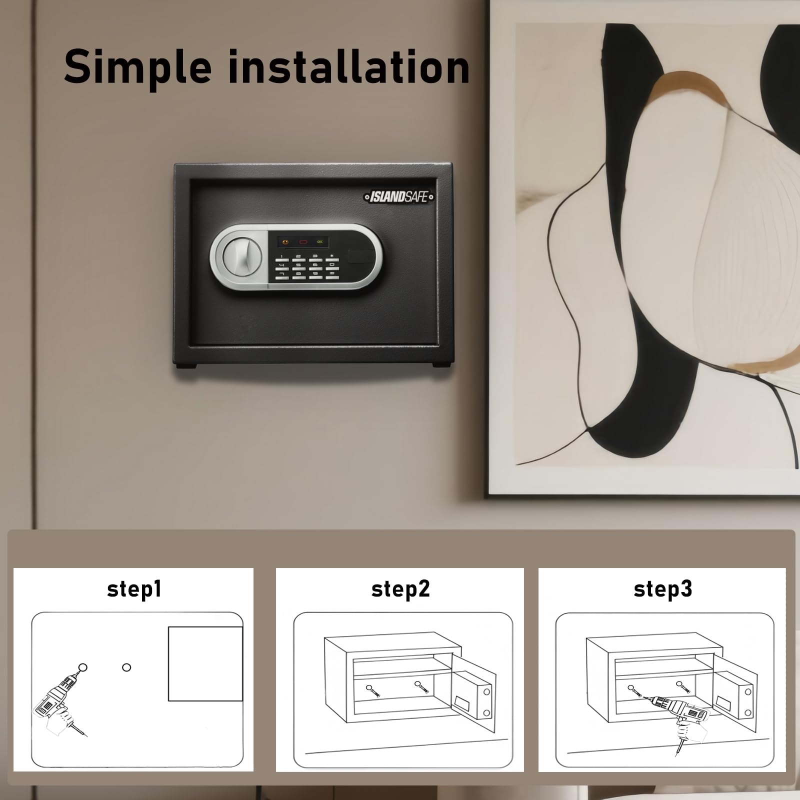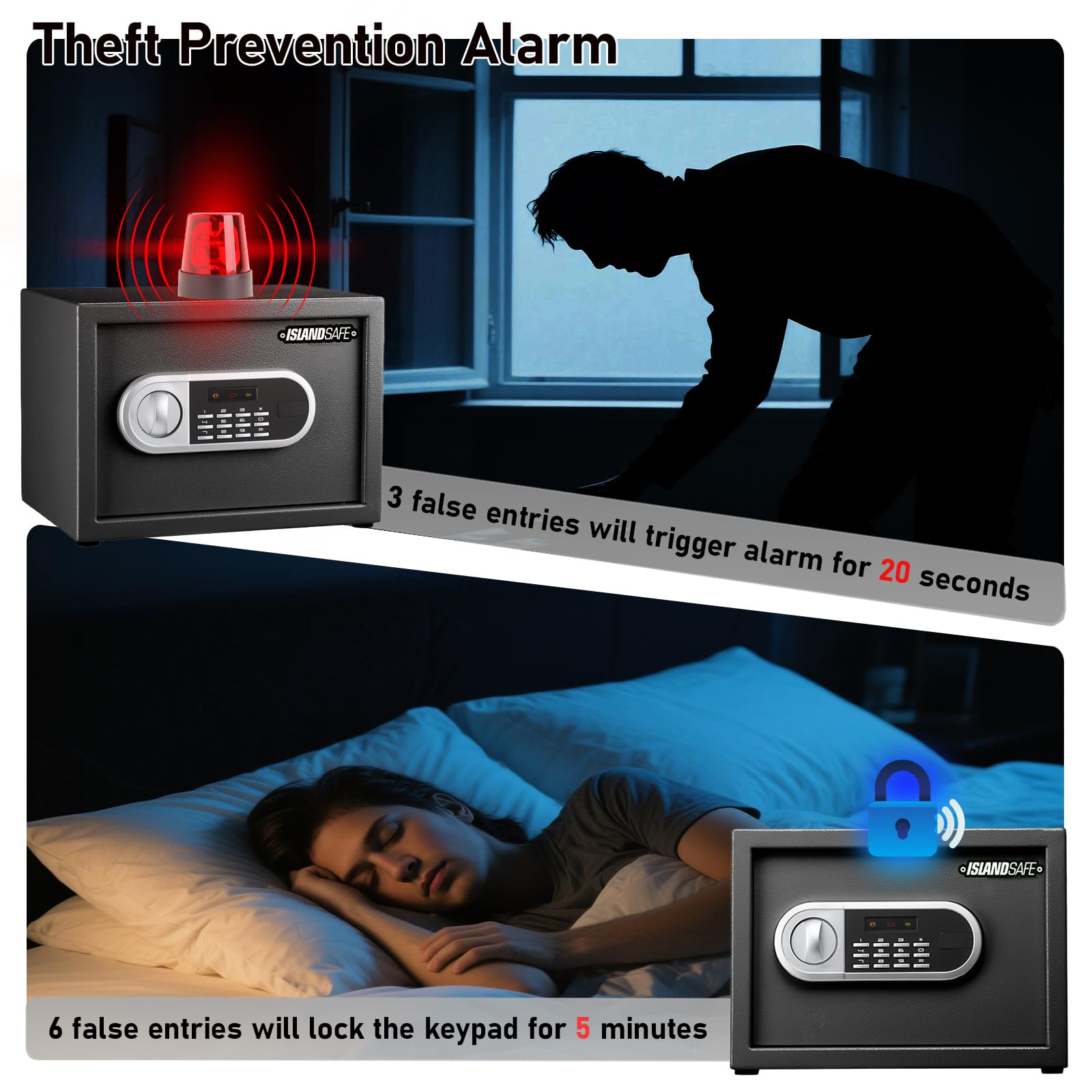 ISLANDSAFE Home Safe Box, Digital Small Personal Safes, caja fuerte, Security Money Closet Electronic Lock Box with Keypad for Pistol Cash Jewelry, Document, Hotel, Dorm, Office (0.8cuft Black)