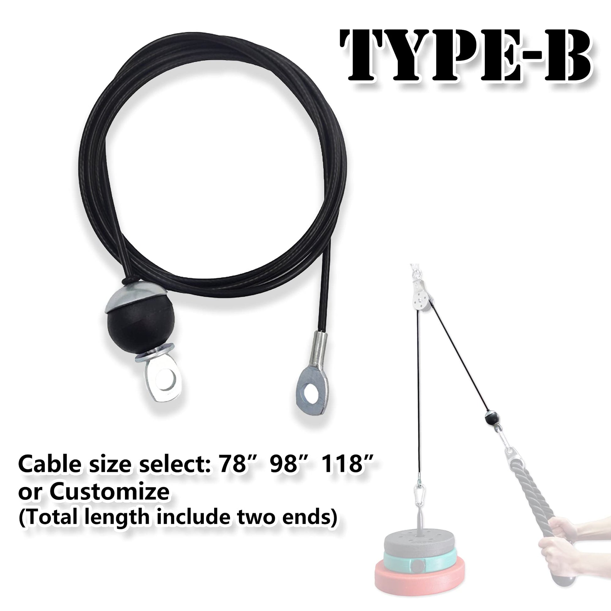 J Bryant Fitness Gym Replacement Cable Fitness Pulley Cable Thick 0.2inch/5mm Heavy Duty Steel Wire Rope for Home Gym Cable Pulley Attachments Machine Accessories (Type-B, 118")