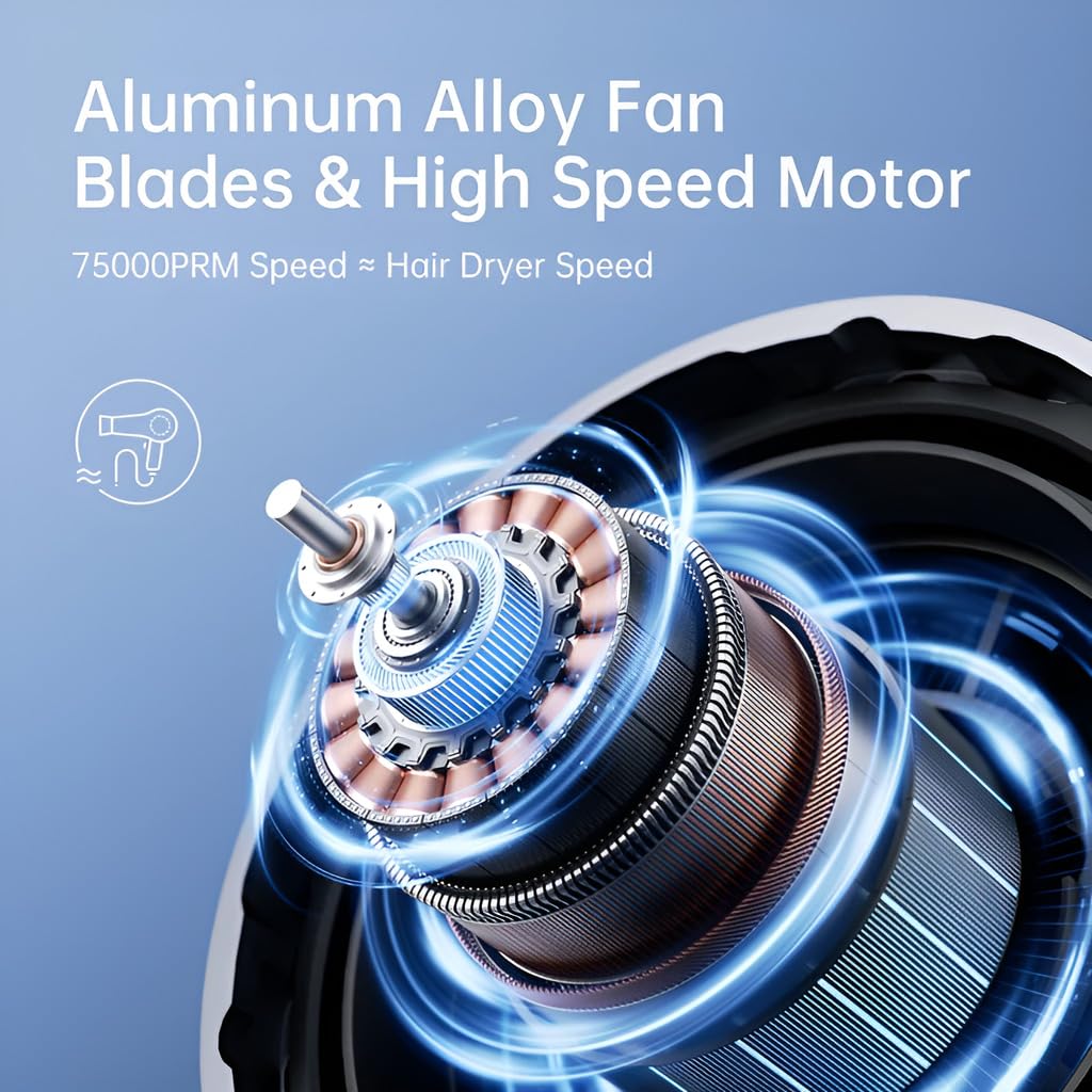 - Customized Wind Speed By Yourself: Travel fan introduces a high-speed hair dryer similar motor, uses an infinity roller to adjust wind speed from 1-100 gears, meets your all needs. Turbocharged wind guide system, strong wind gathering, high-speed airflow gushing out, bringing incredible cooling experience, cooling speed increased by more than 3 times, great gift choice for travel