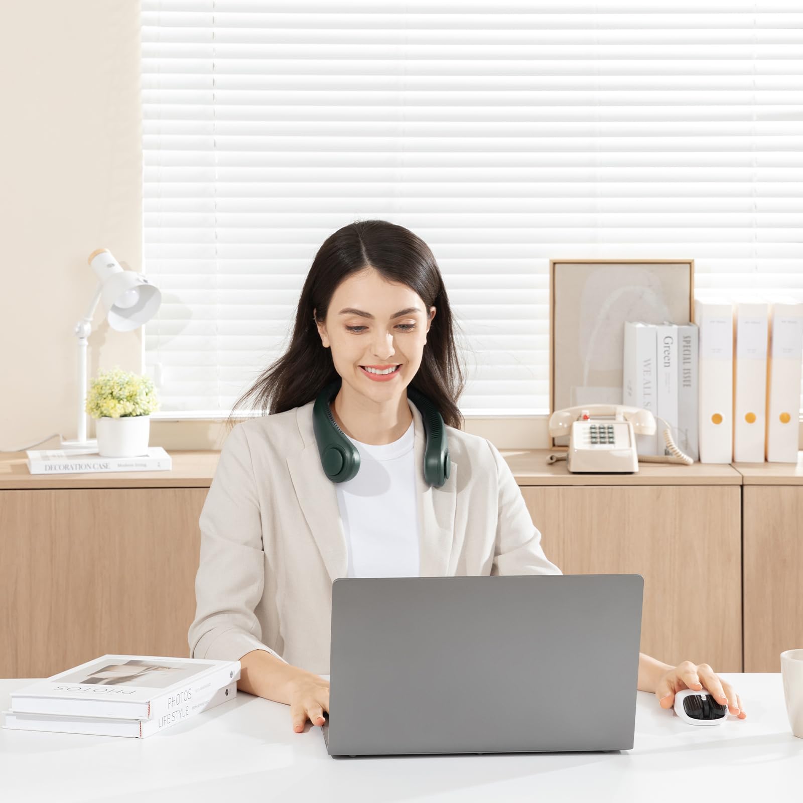 JISULIFE Portable Neck Fan, Hands Free Bladeless Fan, 5 Speeds, 4000 mAh Battery Operated Wearable Personal Fan, Twistable, Rechargeable, Gift for Women Men-Dark Green