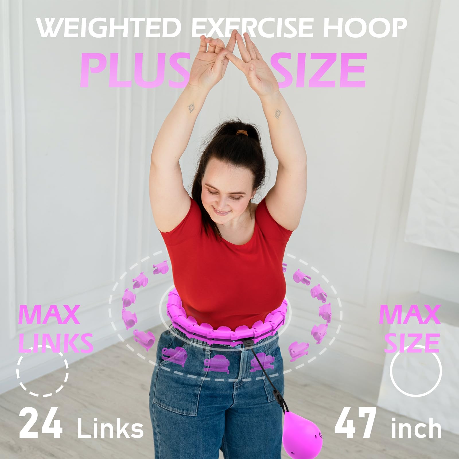 JLoibao Weighted Hula Circle with 24 Links for Adults Weight Loss, Infinity Fitness Hoop Plus Size, for Women Smart Exercise Equipment