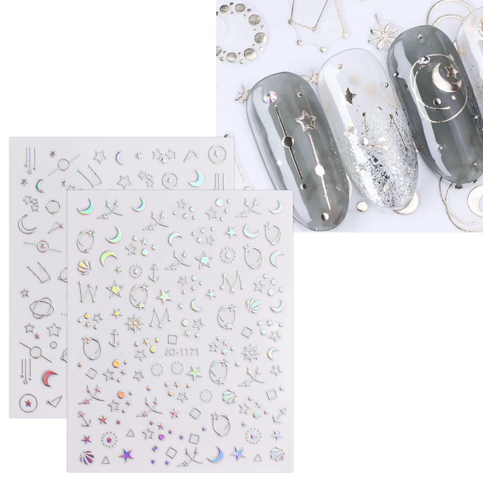 JMEOWIO 12 Sheets Aurora Nail Art Stickers Decals Self-Adhesive Pegatinas Uñas Glitter Holographic Star Heart Nail Supplies Nail Art Design Decoration Accessories