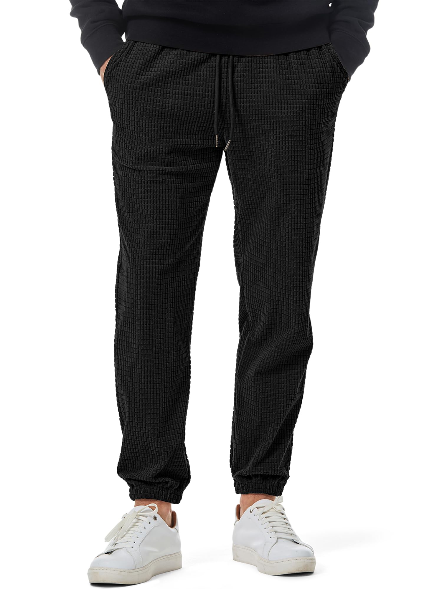JMIERR Sweatpants for Men Casual Waffle Pants Drawstring Stretch Elastic Waist Winter Textured Tapered Joggers with Pockets, 2XL, Black