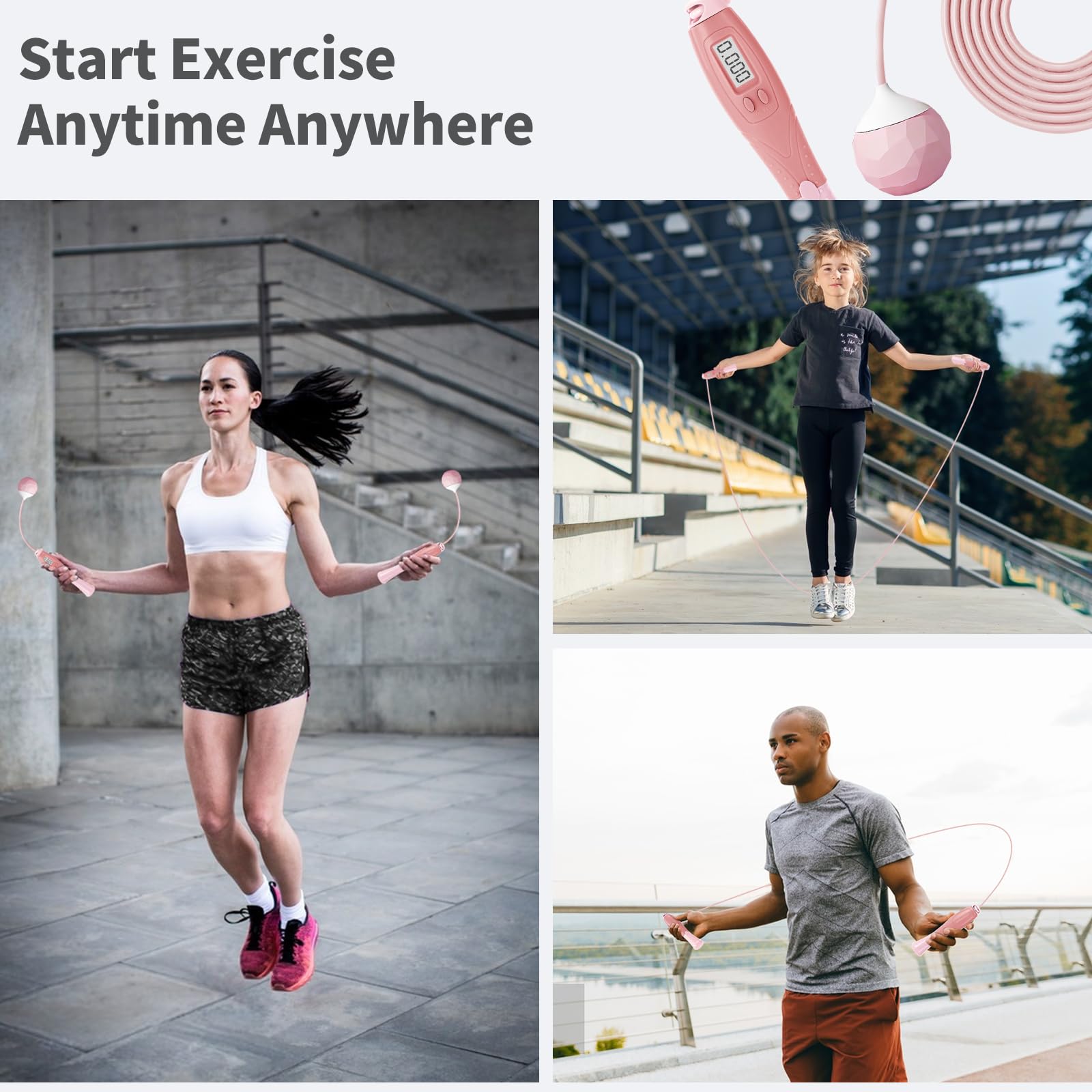 - Adjustable Jump Rope for All:Flexibly adjust the rope's length to 3m/9.85 feet, accommodating users of all ages and heights. Tailored for women, men, and kids, this adjustable workout jump rope becomes an ideal fitness companion for the entire family. A versatile jumping rope for every fitness level.
