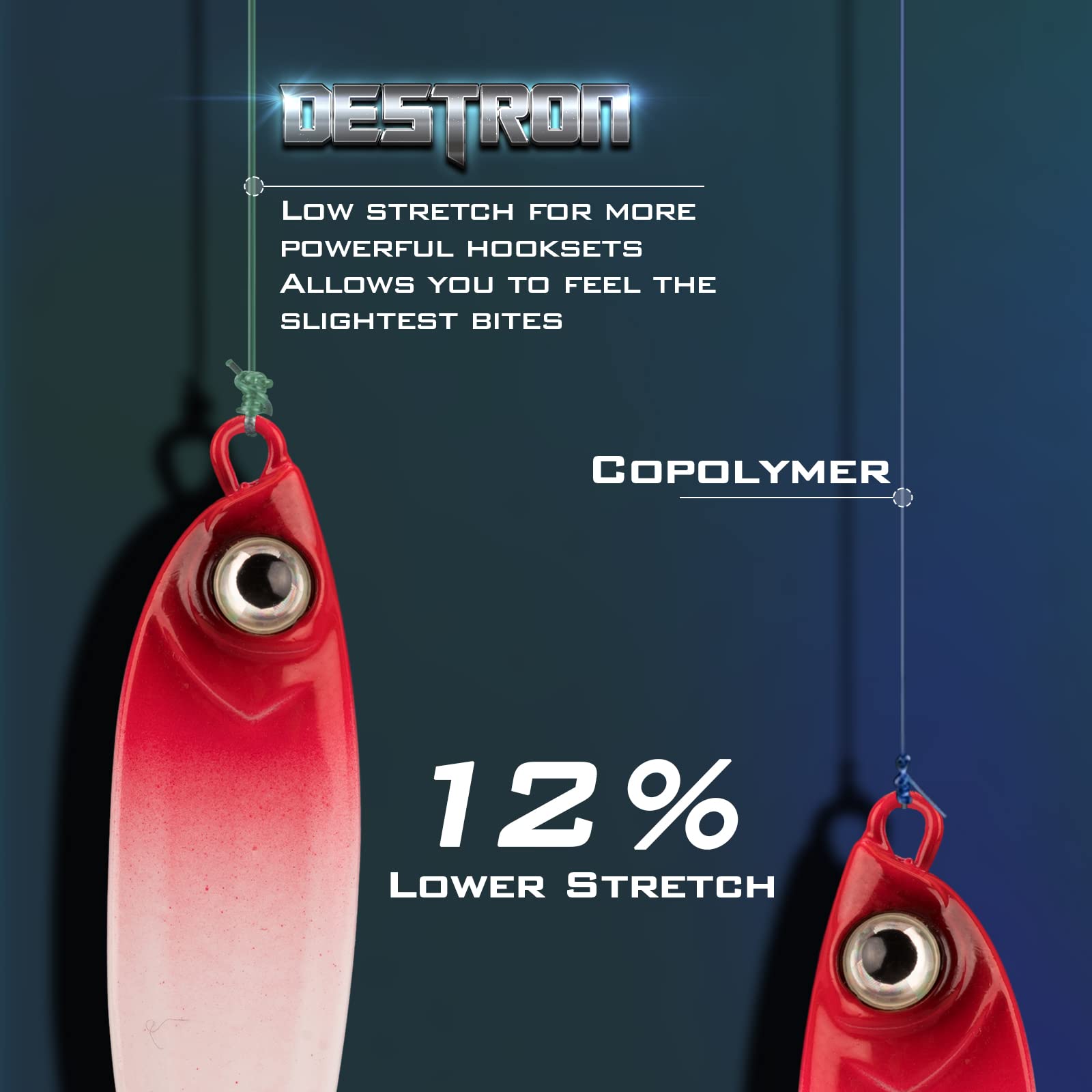 - 【LOW STRETCH】 Destron Nylon Line has a lower stretch factor that averages 12% lower than most traditional copolymer monofilament. Lower stretch allows you to feel even the slightest bite.