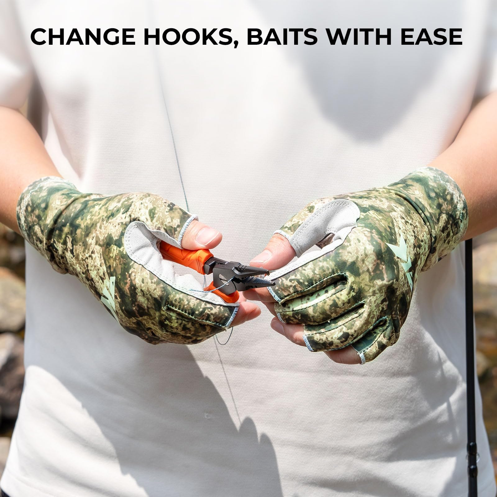 - *Breathable Material – KastKing fishing gloves use breathable poly-spandex fabric to keep you cool and comfortable all day long without getting sunburned. Our 4-way stretch fabric offers a snug fit that won’t affect your dexterity to change hooks, baits or land a fish.