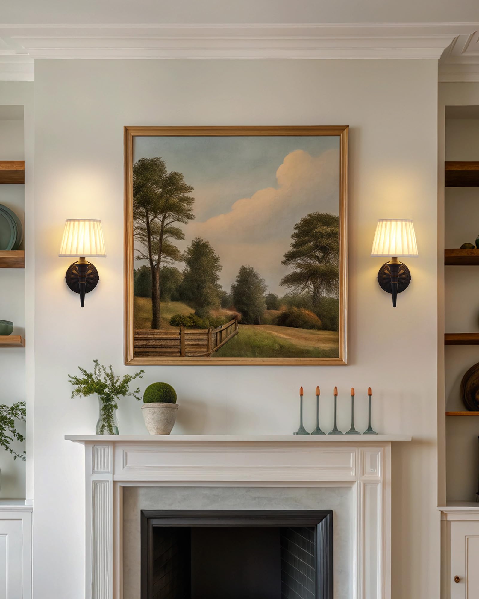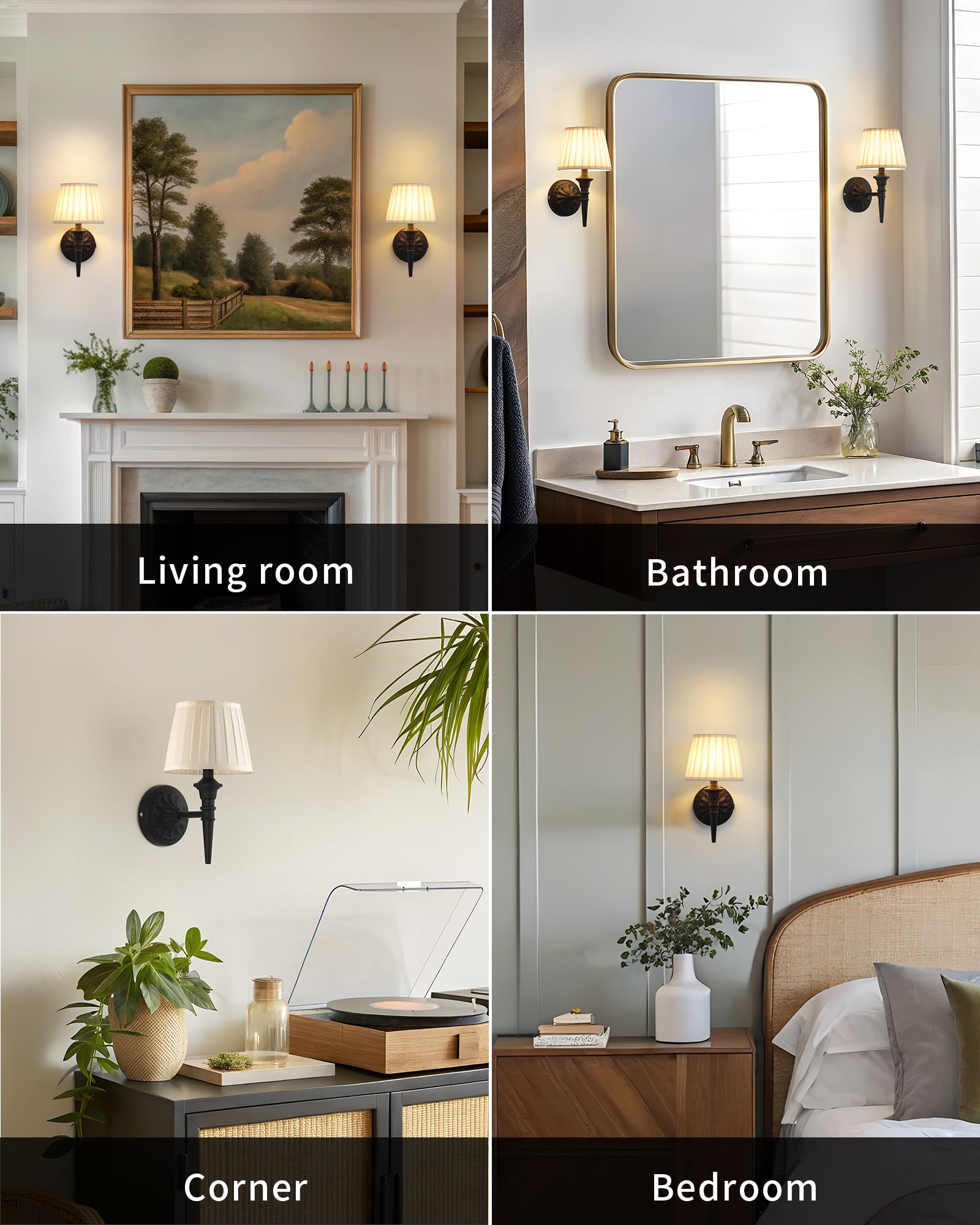 - Metal material: LED multifunctional wall sconce, metal material, high hardness. Gold electroplating process, black frosted process, delicate texture, not easy to rust and fade, durable. Fabric lampshade, filtered light is not harsh, take care of your eyes. Lamp body tightly combined design, thick and sturdy, ideal for home wall lamps