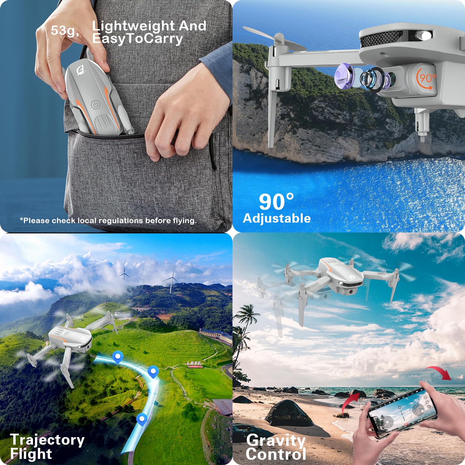 - ✈【Easy-to-Fly 】The mini drone with camera is designed for ease of use featuring multiple functions as Altitude Hold, Headless Mode, and One Key Take-off/Landing,optical flow 3D flips, two-speed modes,emergency stop, 360° flips, trajectory flight, gesture photo/video, low battery warning make the operation is easy and fun,it extremely user-friendly and suitable for beginners,it's the ideal Christmas gifts for boys and girls,wonderful gift for new year ,romantic gifts for your boyfriend,girlfriend.