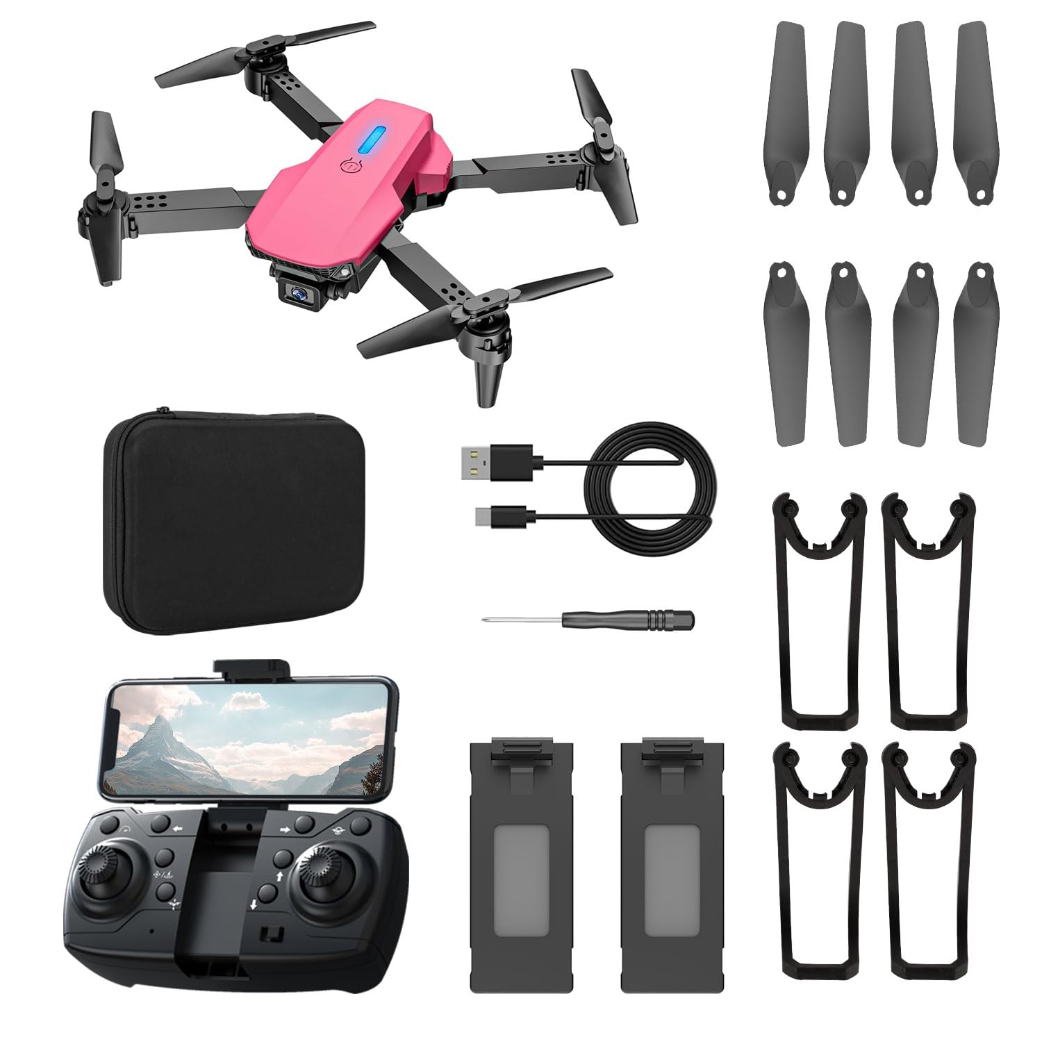 Kids Drone with Camera Foldable Mini Drone for Kids Girls Beginners Toys Drone Gestures Selfie One Key Start 360° Flips 2 Batteries Toy Gifts for Girls Pink