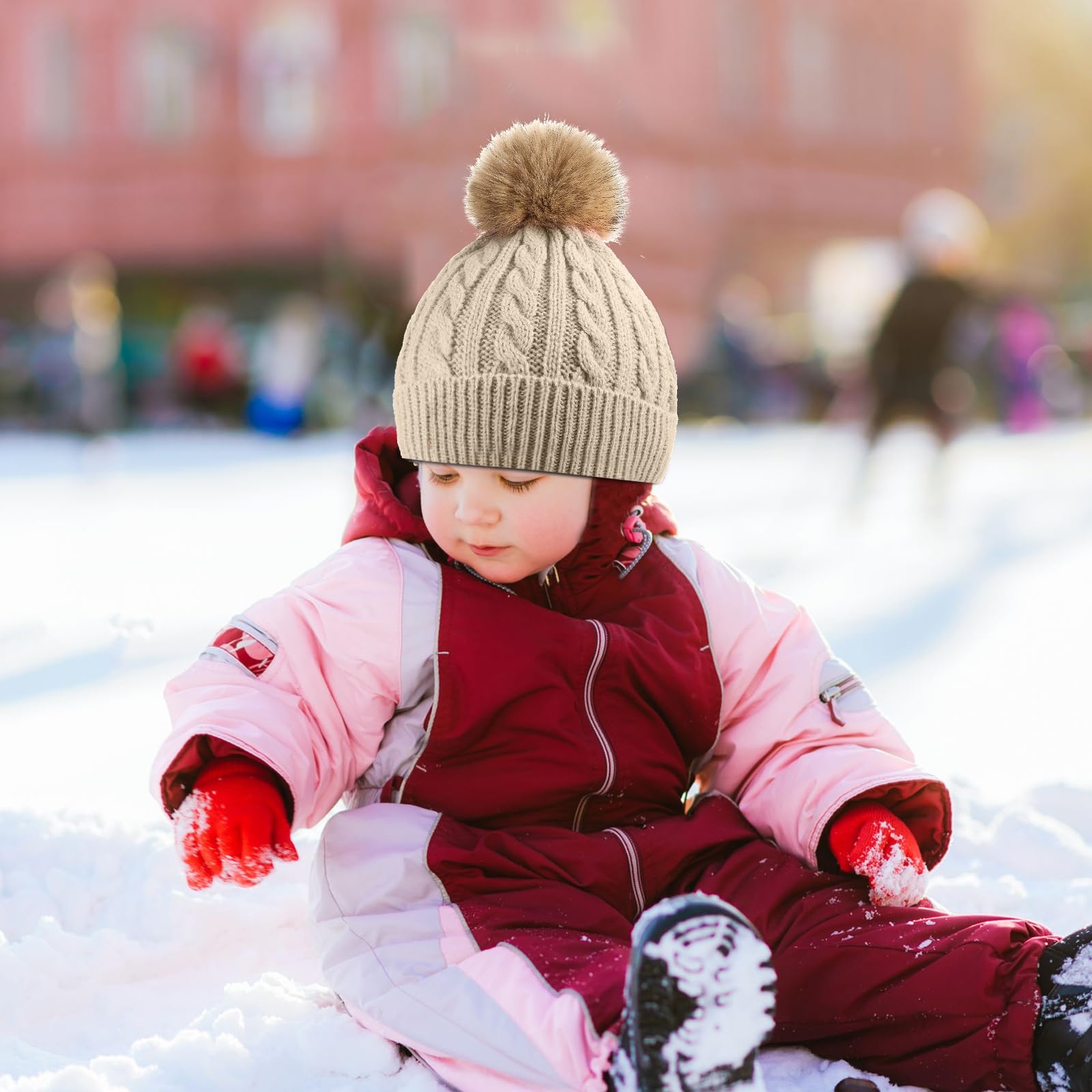 - Comfy to wear: these pom pom knitted hats are knitted from woolen yarn, soft and gentle to skin, quality and stretchable, lightweight and thermal, can accompany kids for a long time; With nice elasticity, the bobble hats can be stretched to fit most kids aged 1-3 years old, wearing it will keep toddlers' head warm in cold days without adding much burden to their head