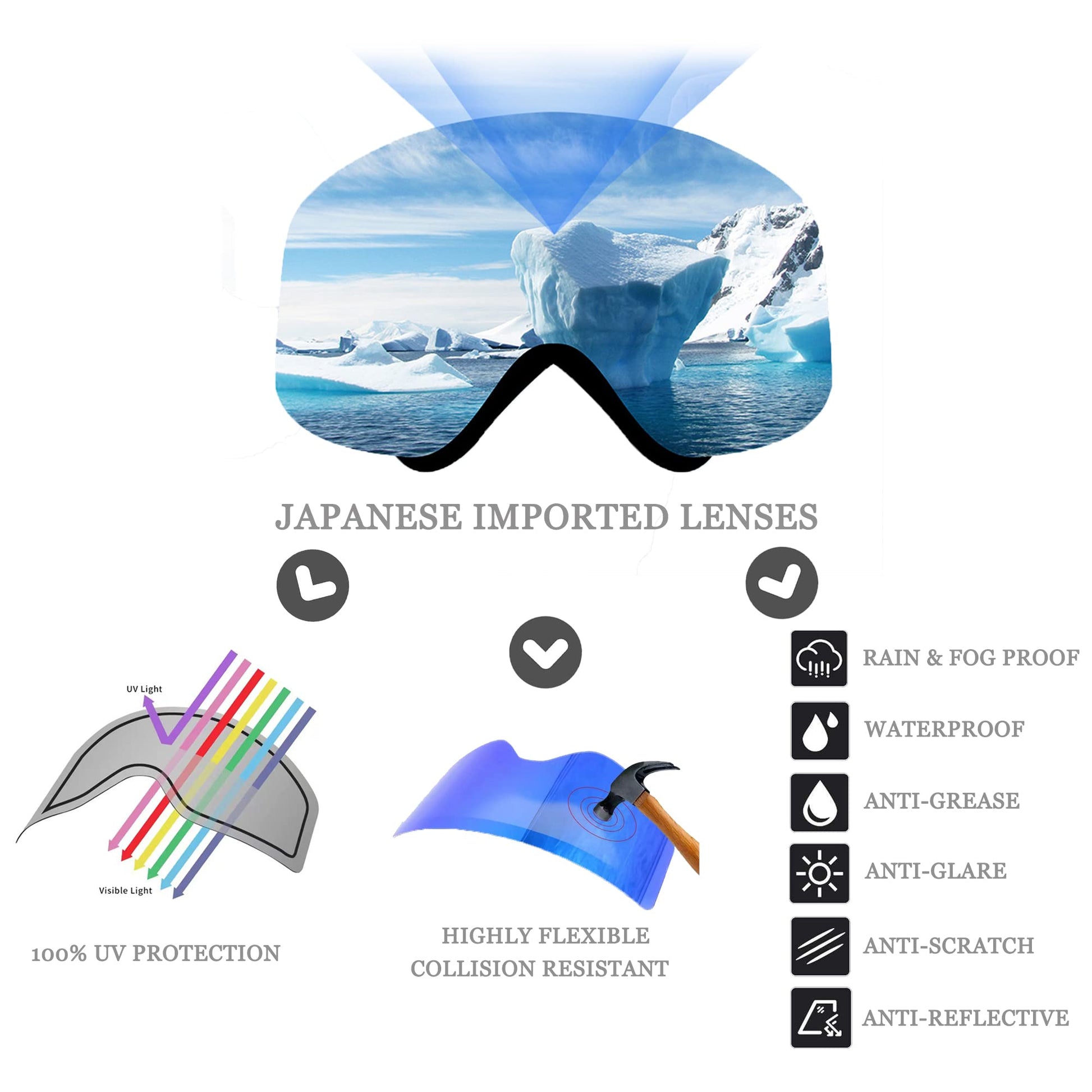 KIICHI TERASAWA Ski Snow Goggles Anti Fog Snowboard Snowmobile Skiing Skating Sport Protective Goggles for Men and Women