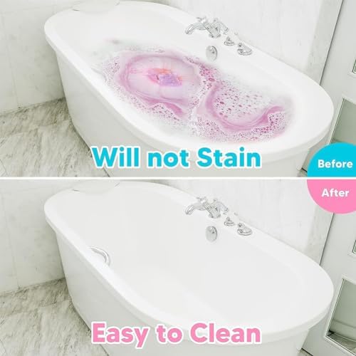 - 【No Tub Stains & Easy to Clean】We use pure natural phytochromes to create beautiful color in water, contains no artificial flavors or colors. And it easy to dissolve and rinse, your bathtub won't be stained. Also there will be no residual pigment in the skin, safe and gentle for kids. If you hate the sticky, dirty feeling of shower gel, just try our bath bombs. ( Tips: When children play, ask adults to accompany them.)