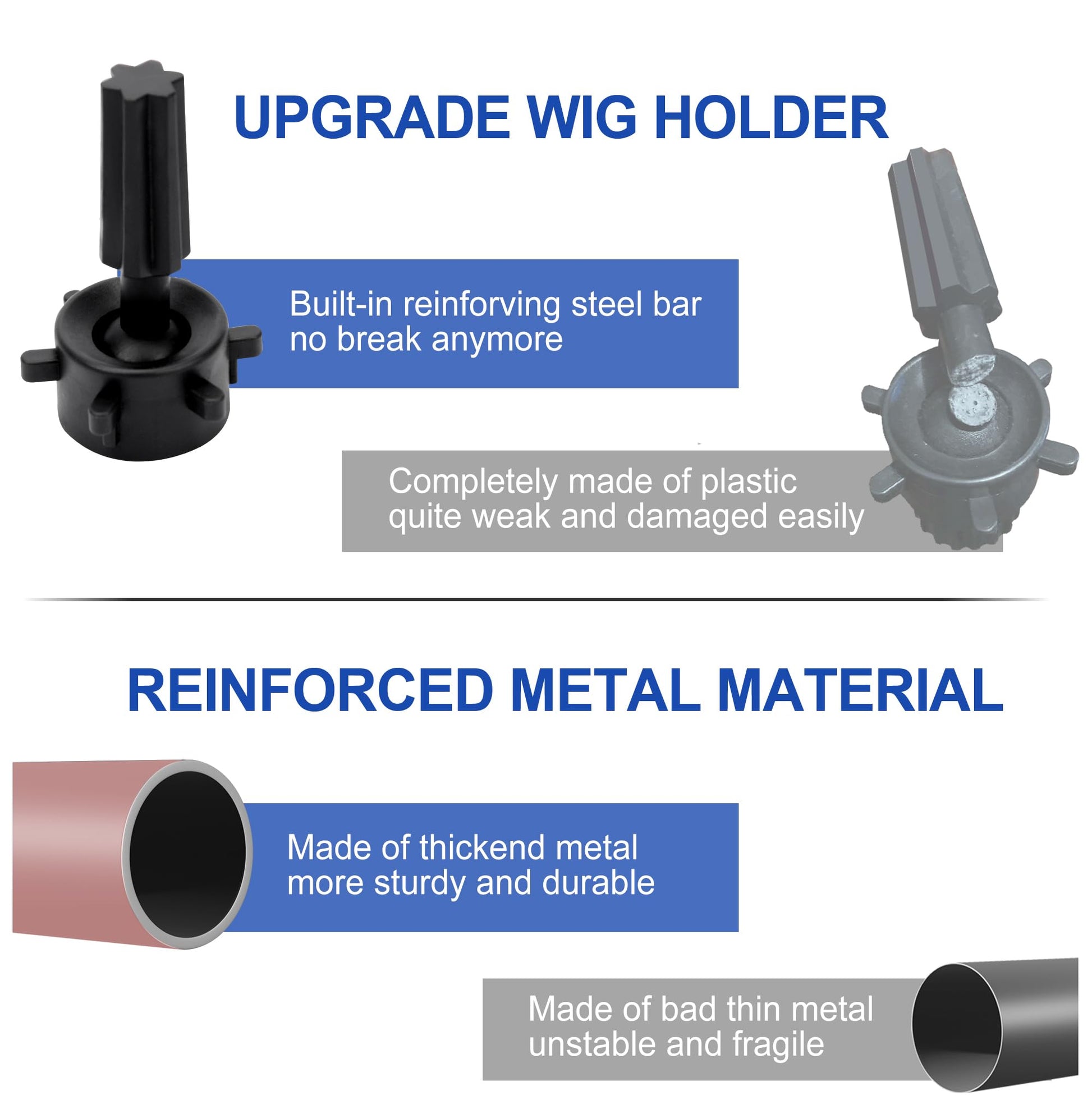 - More Practical & Functional:It's suitable for most open bottom wig heads.The part holds the manikin head can be fixed to keep the head in place.It won’t moving randomly during a blow dry or application.A convenient tool tray can store hair cutting tools