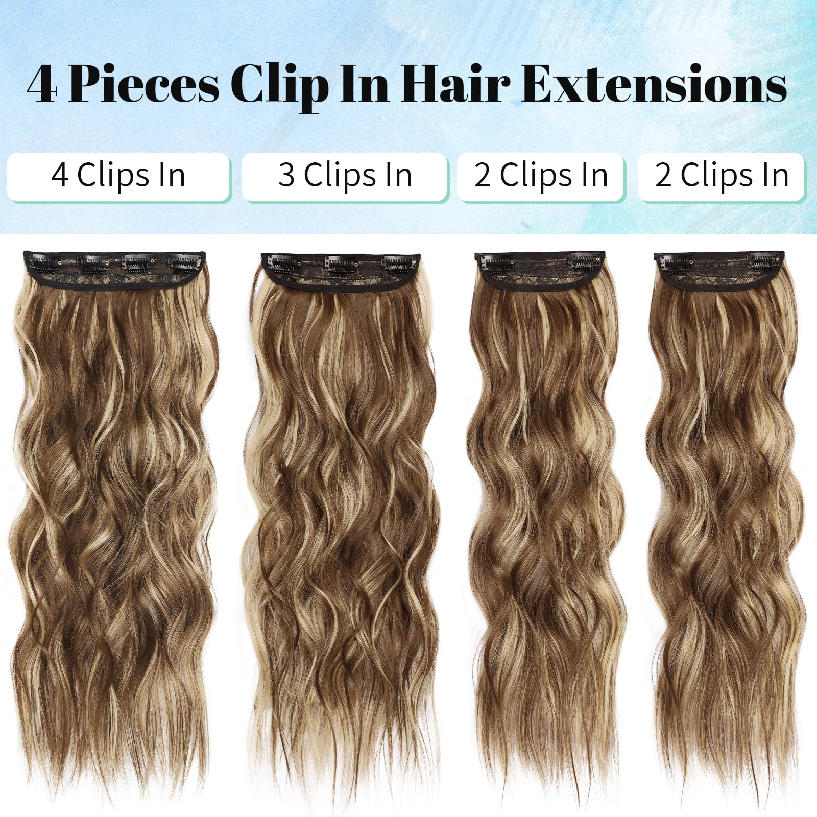 KooKaStyle Clip in Synthetic Hair Extensions Long Wavy 4PCS Honey Blonde Mixed Light Fiber Double Weft Natural Hair Extensions 20 Inch for Women