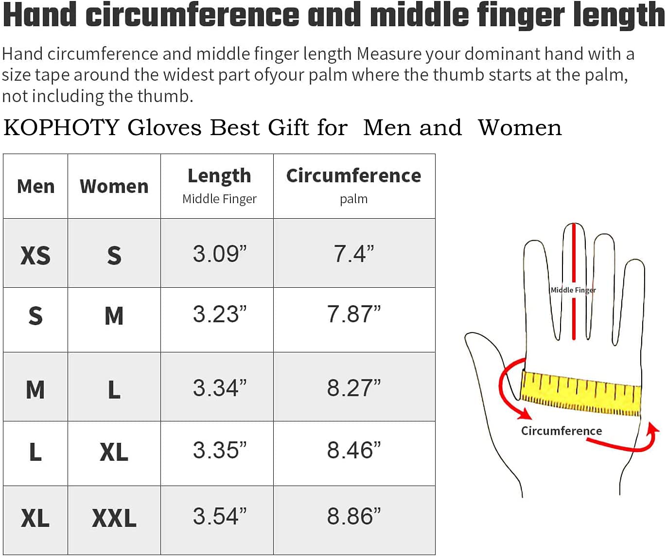 - ✔ TOUCH SCREEN DESIGN - With the Unique and Sensitive touchscreen Fingers Capability, The top of thumb and index finger is high sensitive conductive material with touch screen. Wearing KOPHOTY Gloves can also use your smartphone, tablet, iPhone or other touch screen devices.