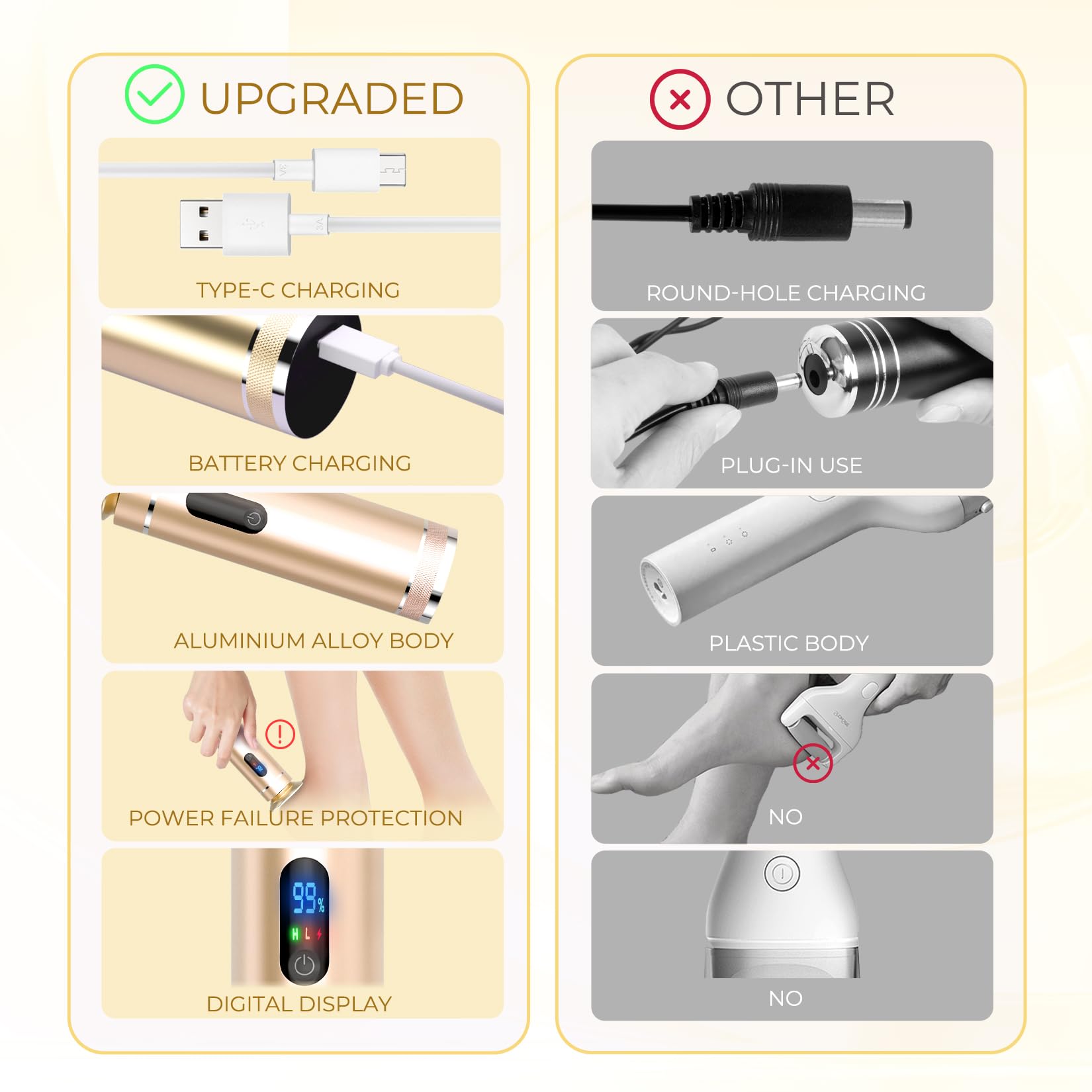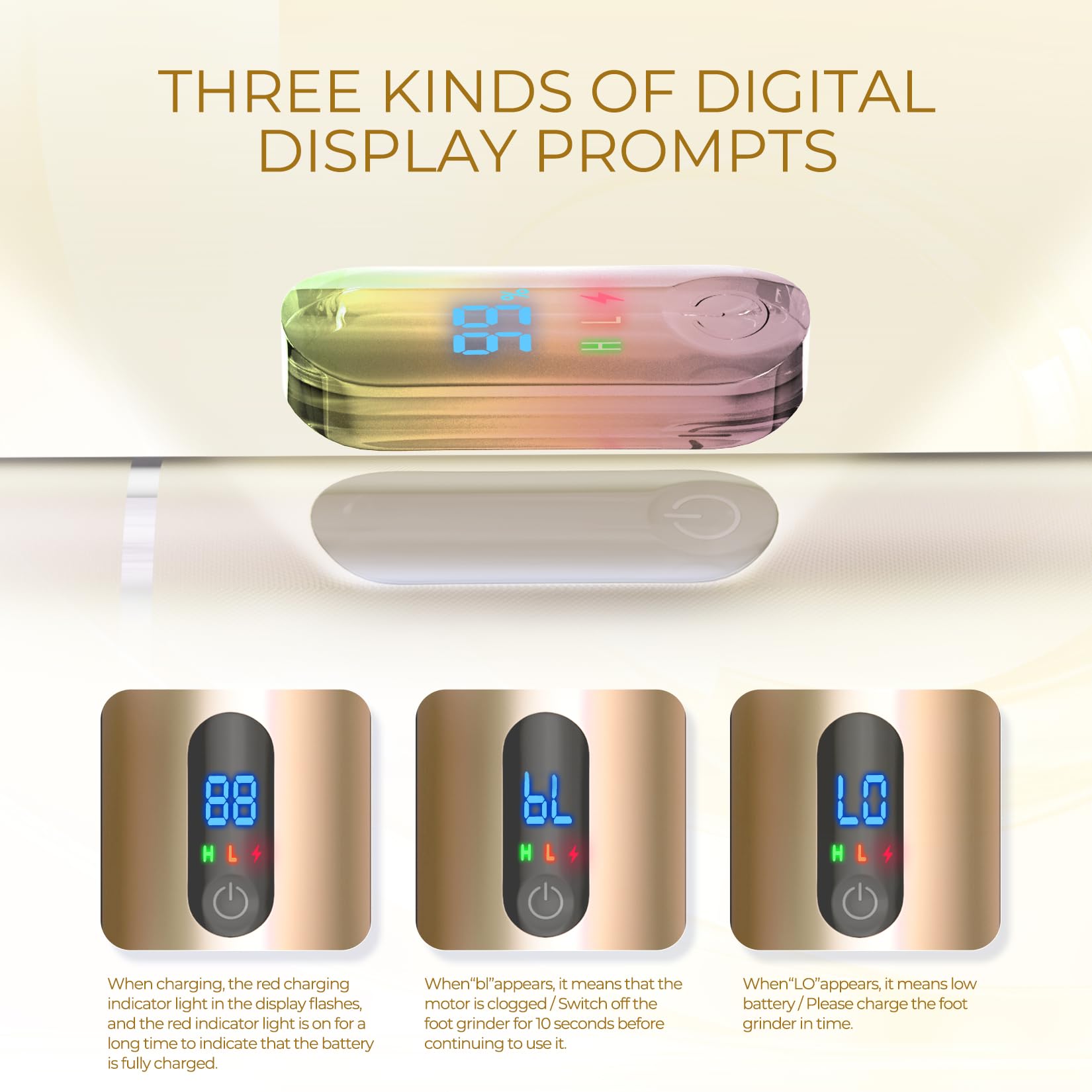 - 【LCD Digital Display】krofaue electric foot sander has a power digital display that can intuitively show the current remaining power in percentage form. We can instantly find out if our foot callus remover tool electric has enough power left, thus reducing the embarrassment and inconvenience of being forced to interrupt use electric foot callus remover due to a sudden power drain. Our rechargeable foot grinder professional pedicure tools make you enjoy a comfortable and stress relieving foot care at home