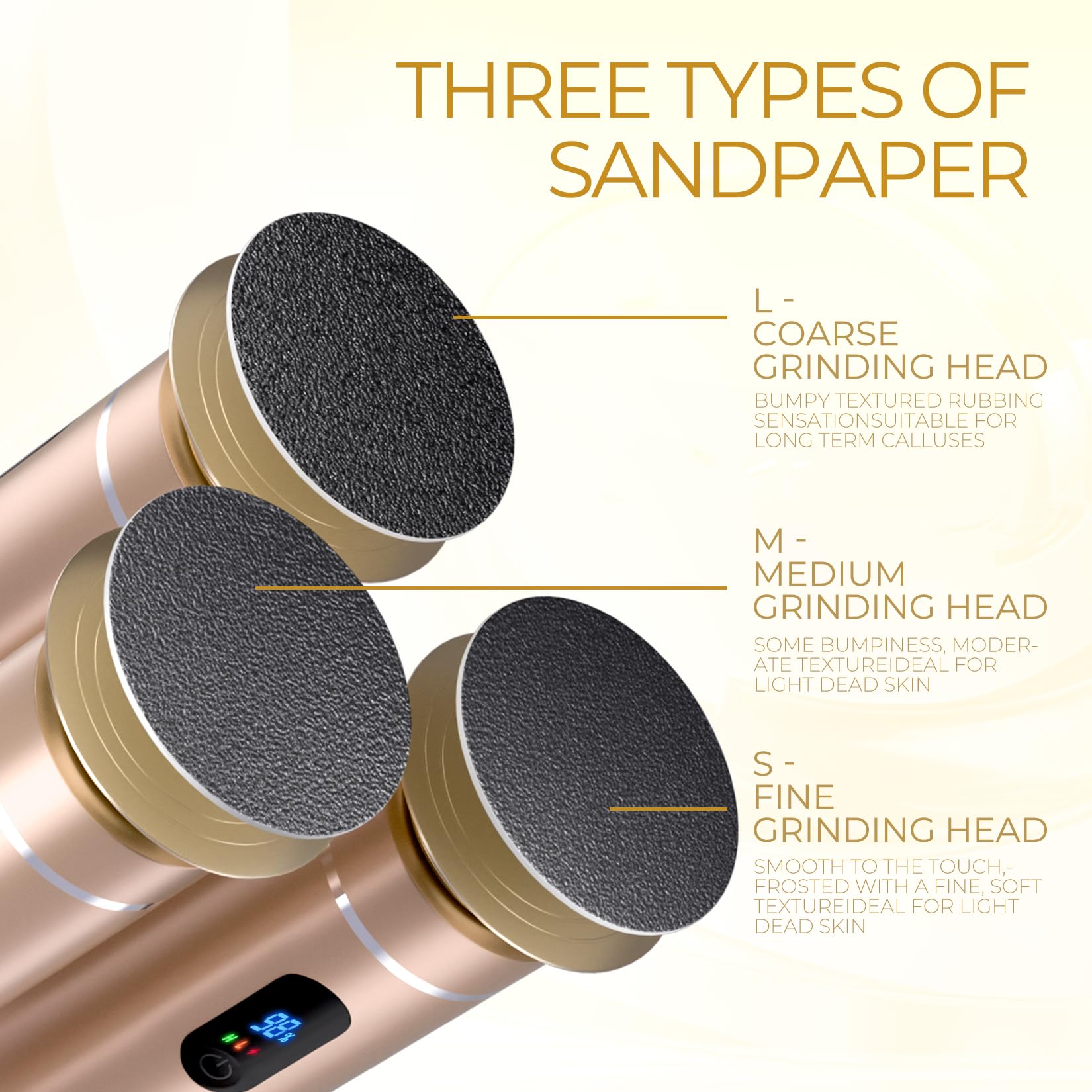 krofaue Electric Foot File Callus Remover - Electric Callus Remover for Feet Rechargeable Foot Grinder Professional Pedicure Tools 2 Speed Adjustable with 60pcs Sandpaper for Dead Cracked(Gold)
