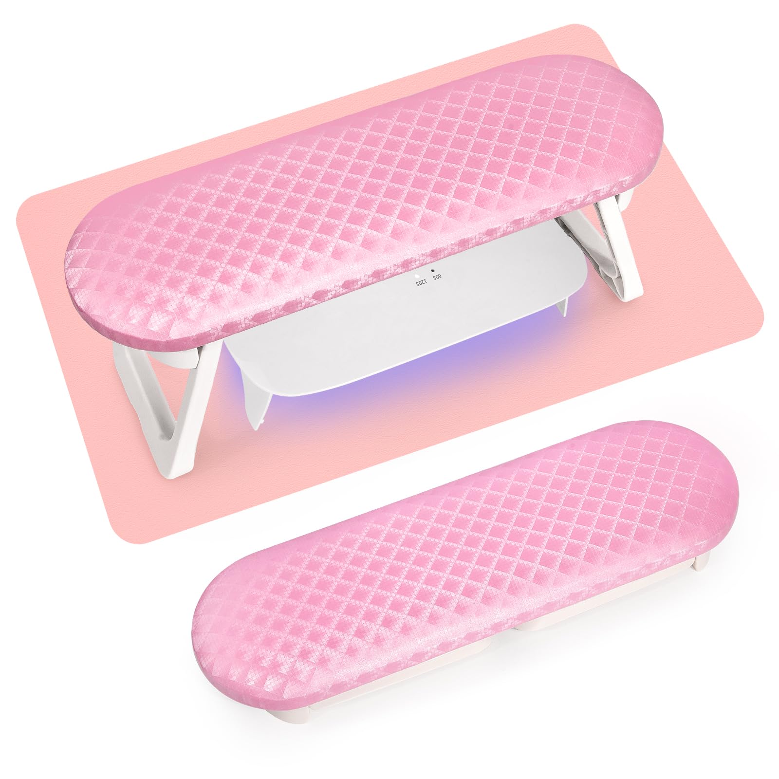 krofaue Nail Hand Rest - Folding PU Leather Arm Rest for Nails Tech with Nail Mat, Cushion Nail Hand Rest Stand for Acrylic Nails Professional Nail Pillow for Manicure Pedicure Salon Home (Pink)