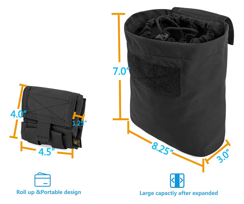 KRYDEX Molle Dump Pouch Roll-Up Drawstring Magazine Utility Pouch Folding Dump Bag (BK)