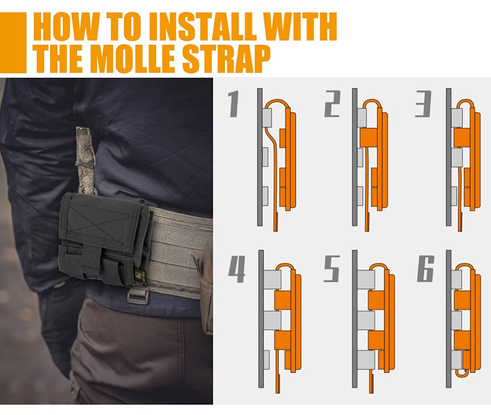 - The folding dump pouch is compatible with MOLLE or pistol belts up to 2.5 inches in height.